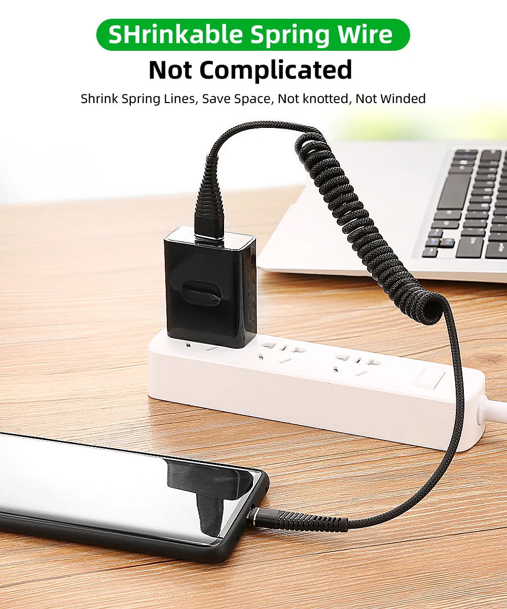 Зарядное устройство с Micro USB Type-C, пружинный кабель для Samsun...