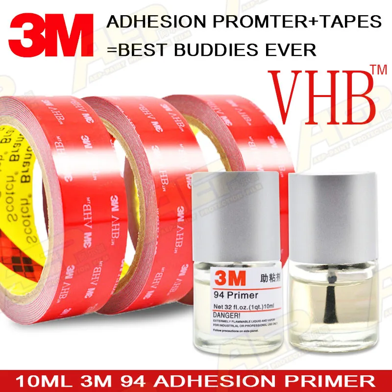 Праймер 3M 94 может использоваться только для приклеивания лент к таким поверхностям, как полиэтилен, полипропилен, АБС, ПЭТ/ПБТ, бетон, дерево, стекло, металлические и окрашенные металлические поверхности.