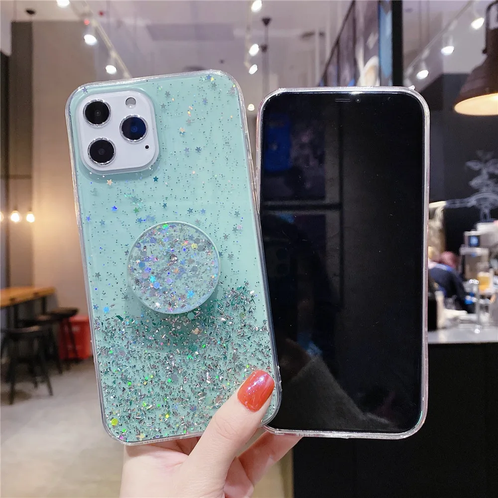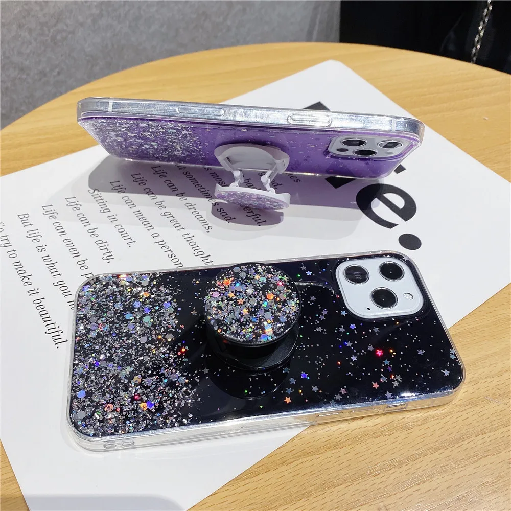 Чехол-подставка для Xiaomi Redmi Note 10 Pro, силиконовый чехол с блестками для Xiomi Redmi Note 10, 9 Pro, 9S, 9T, 8, 7 Pro, 8A, 9A, 9C