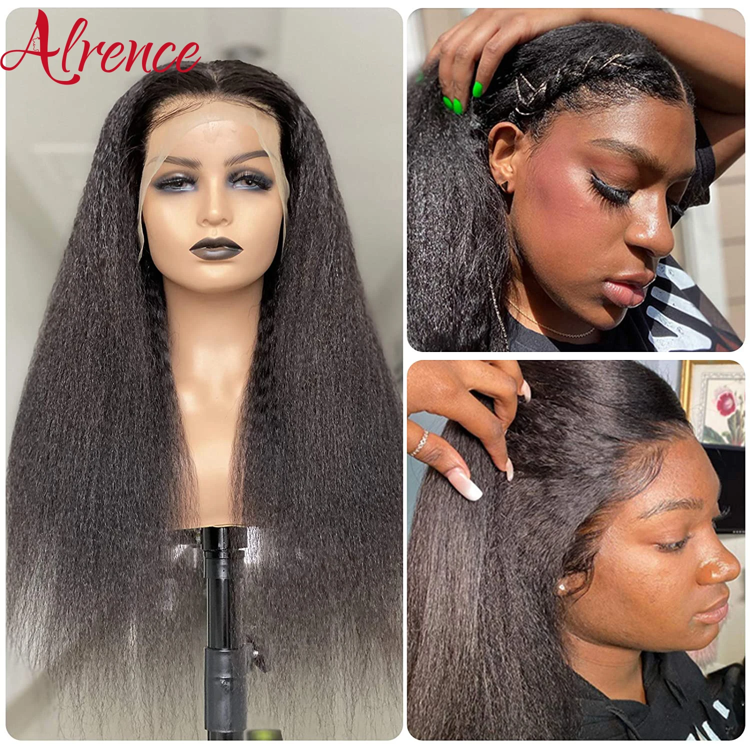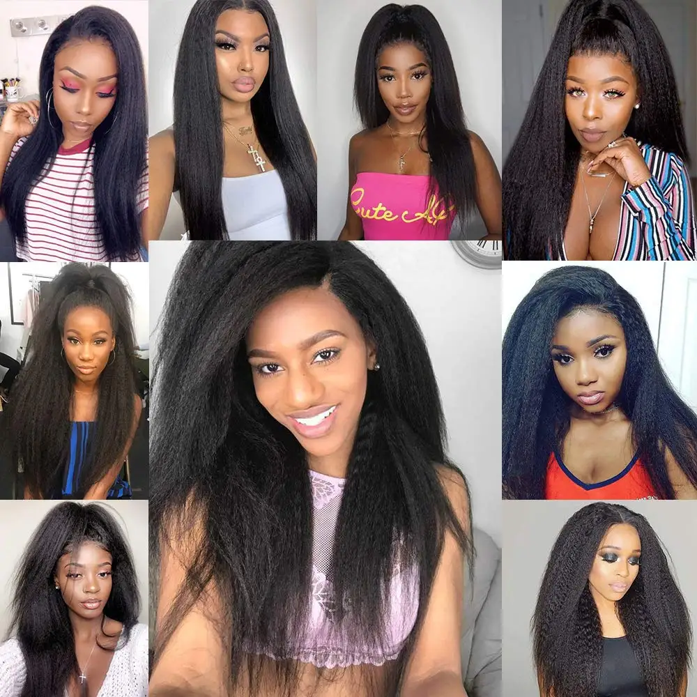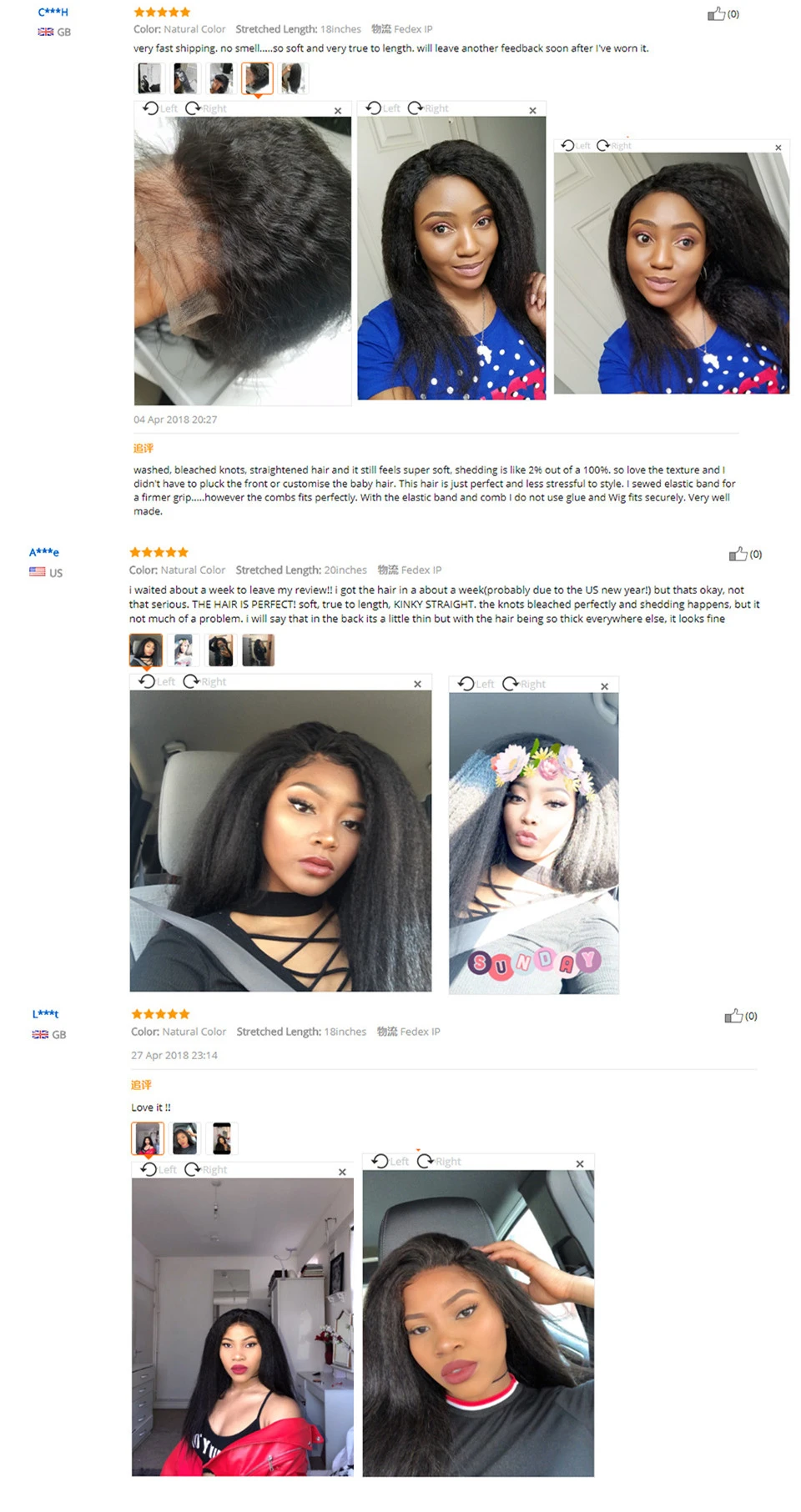 Hair Material:100% kinky straight Human Hair Wig preplucked lace wig