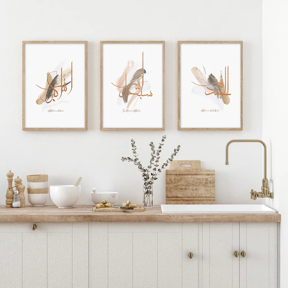 Бежевый Zikr абстрактные исламские настенные художественные плакаты...