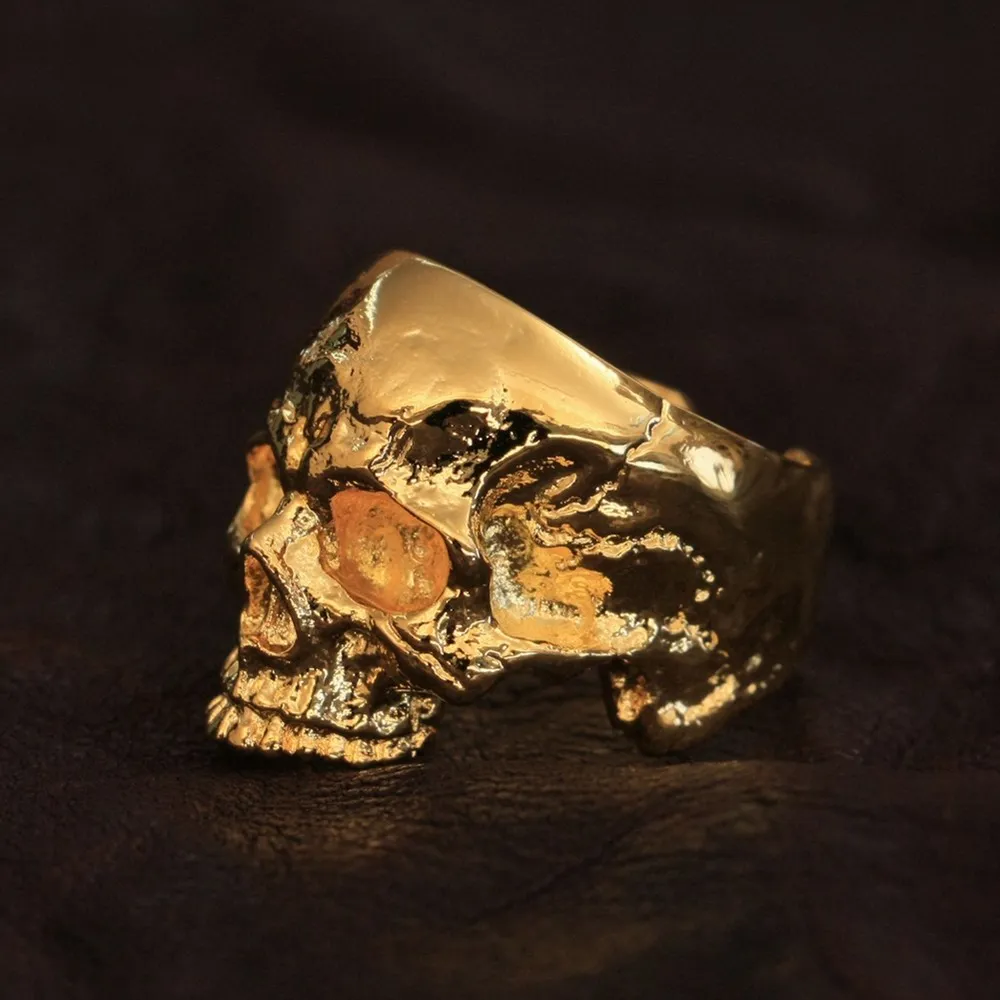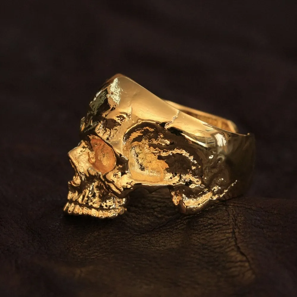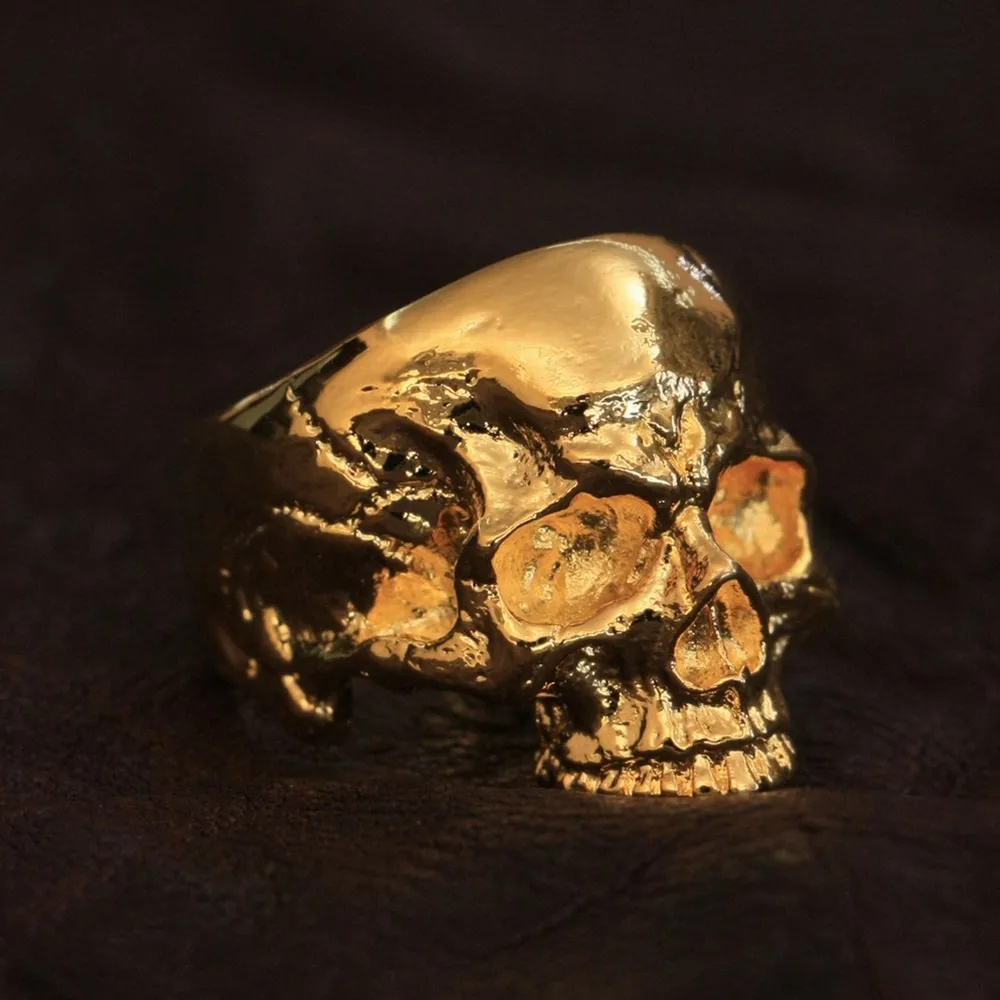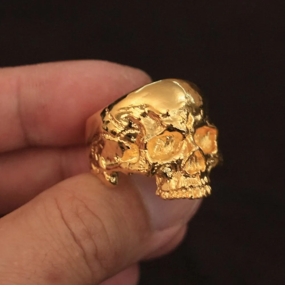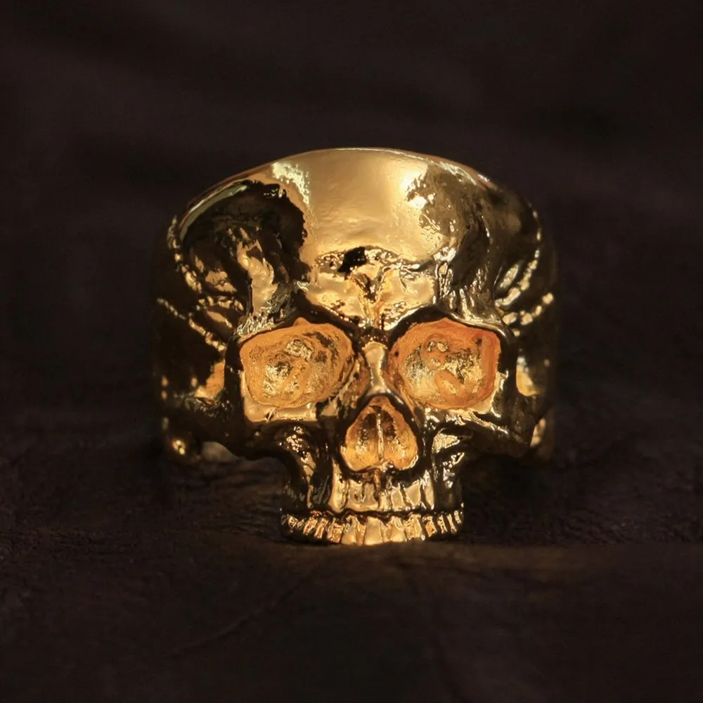 LINSION детали позолоченные латунные мужские кольца с черепом байкерские Рок Панк ювелирные изделия GP135 США Размер 6,5 15