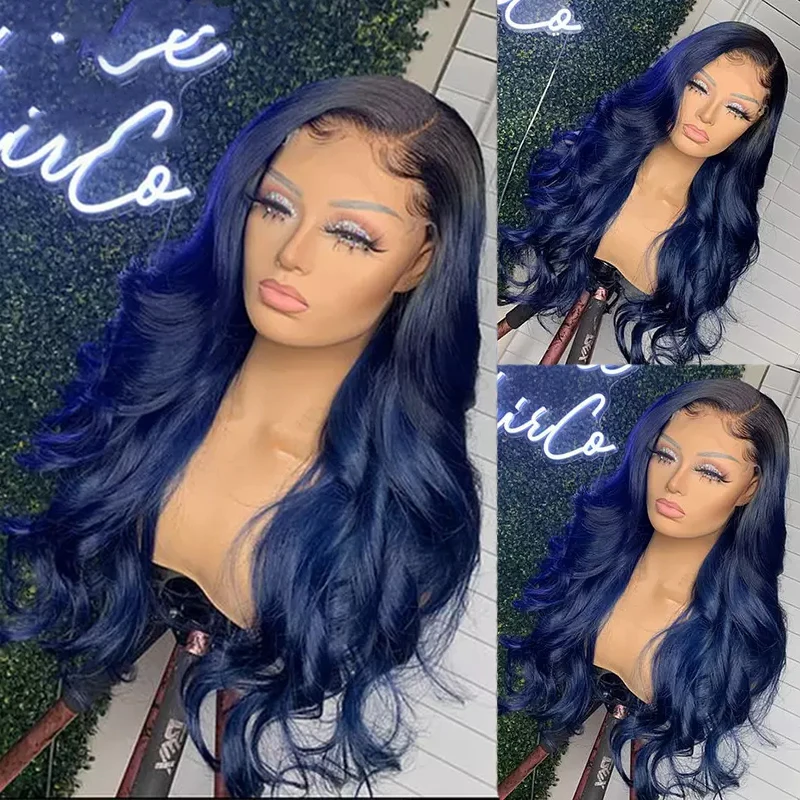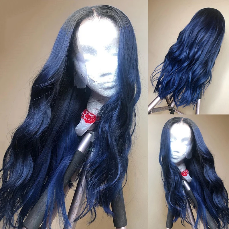 Синий парик Омбре из человеческих волос на сетке спереди для женщин 1Bсиний волнистый бразильский парик с застежкой на сетке 13x4 парик на сетке T-образный парик с застежкой