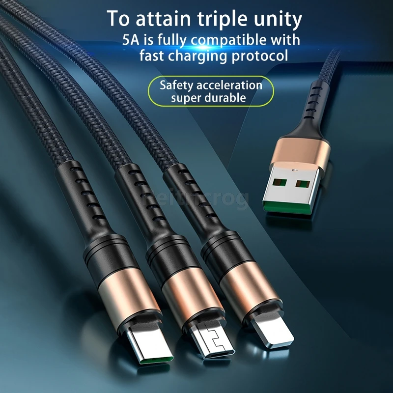 Кабель зарядный 3-в-1 с Micro USB Type-C и поддержкой быстрой зарядки