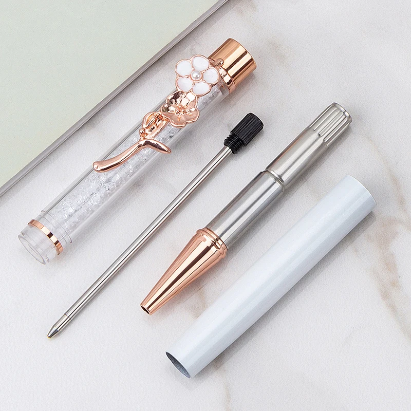 Креативная ручка с зажимом в виде цветка, модная ручка с кристаллами, с логотипом на заказ, оптовая продажа, металлическая шариковая ручка, подарок вечерние, канцелярские принадлежности для офиса