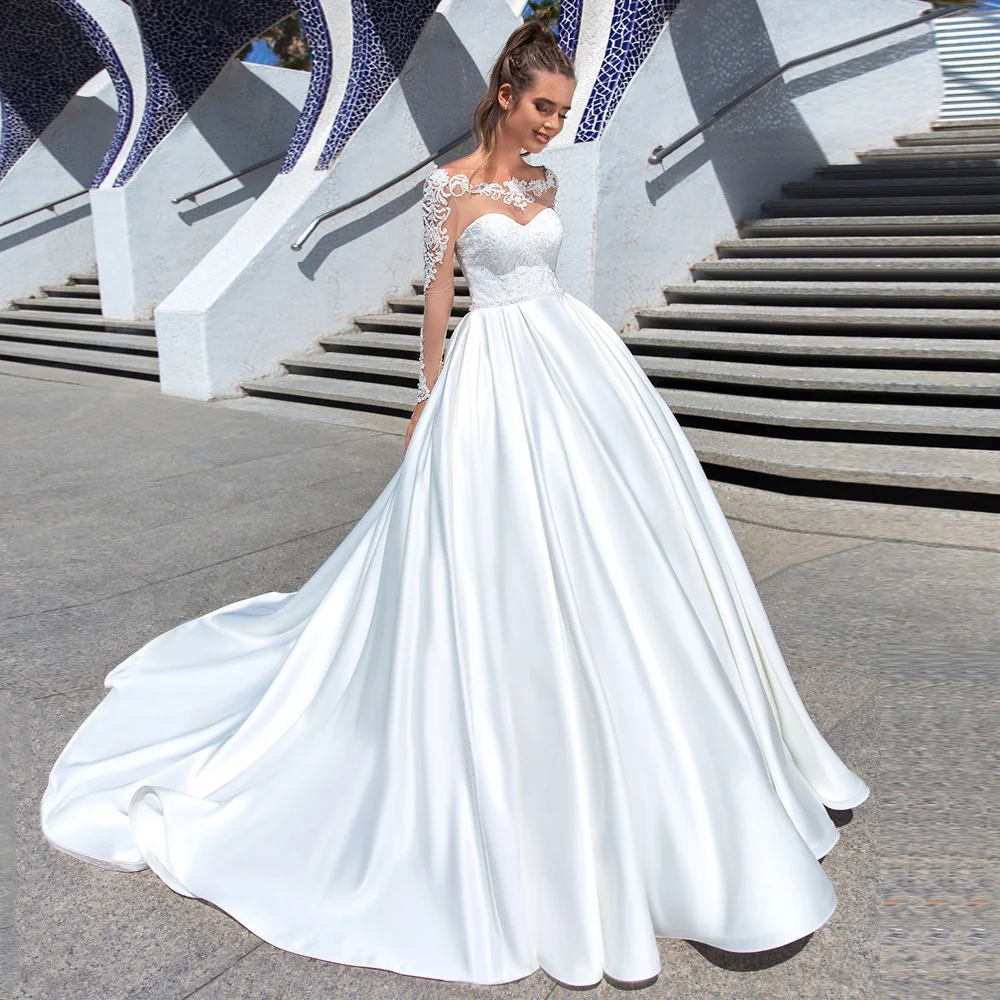Платье свадебное атласное с длинным рукавом, с кружевной аппликацией icon star icon star icon star icon star icon star
