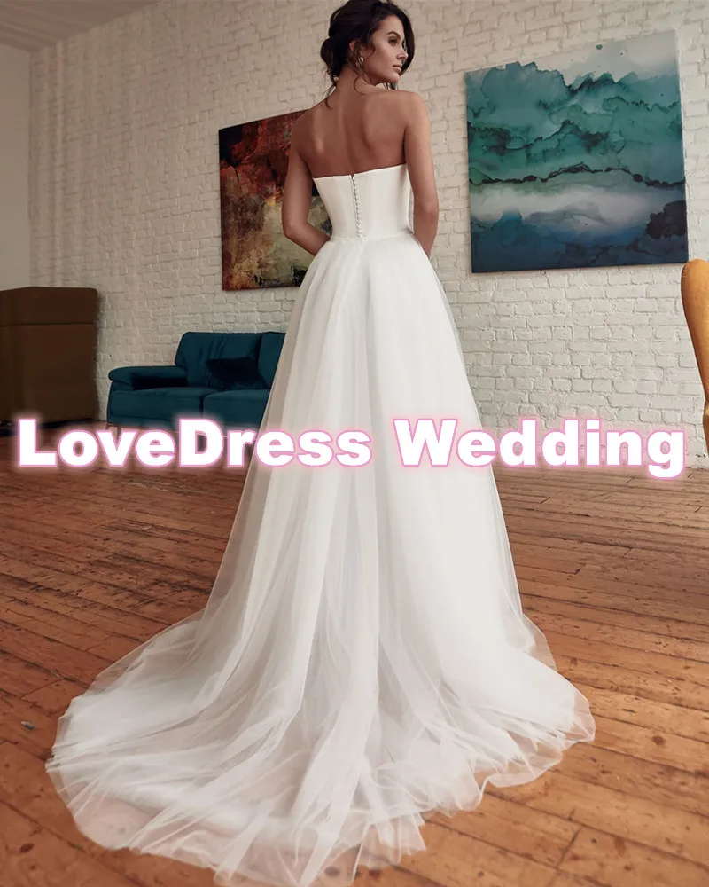 Короткое неофициальное без бретелек свадебное платье 2021 пляжная о...