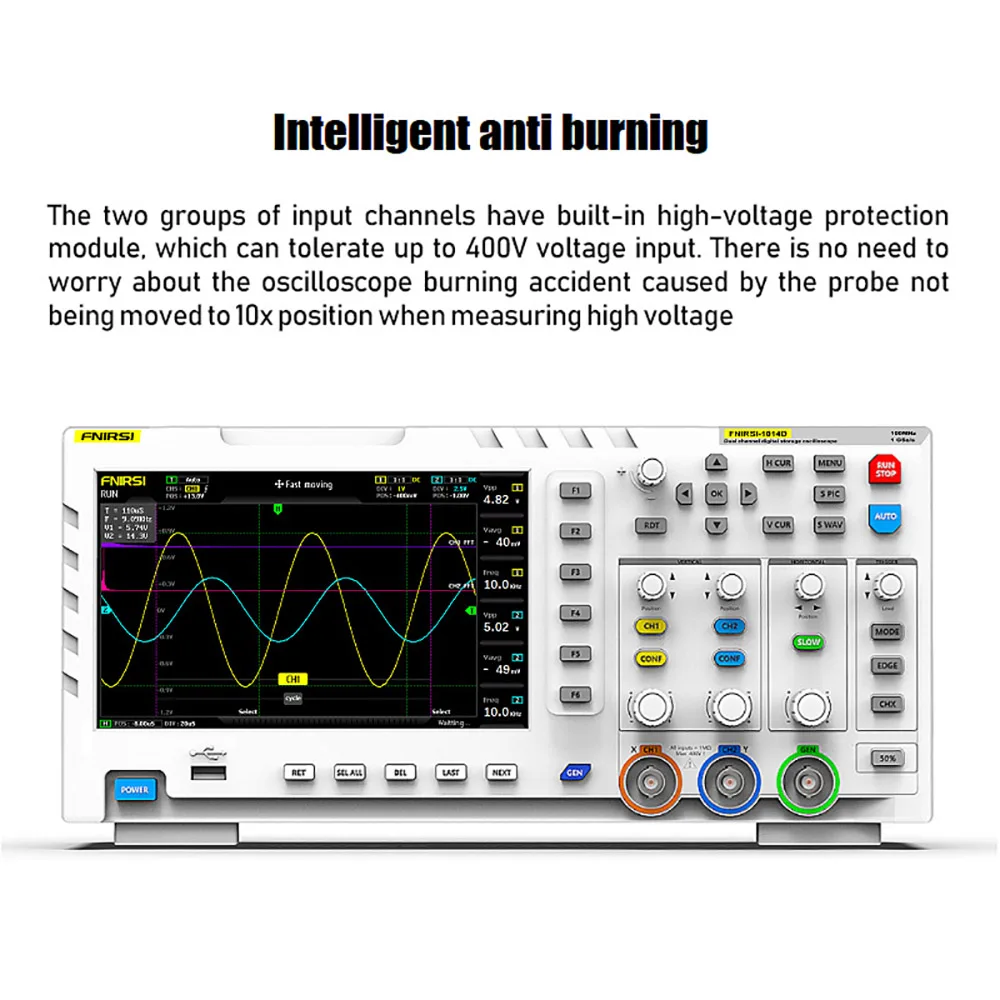 Встроенный генератор сигналов DDS, поддержка 12 видов функционального сигнала.Оригинальная функция захвата выходного сигнала позволяет хранить до 1000 сигналов захвата.Целевой Высокоинтеллектуальный алгоритм декодирования, срок службы кодировщика бесконечен.Интеллектуальная защита от ожогов, 1X Выдерживает напряжение до 400 В.100 МГц аналоговая полоса пропускания @ 1GSa/s частота дискретизации(1X = 5 МГц, 10X = 100 МГц).