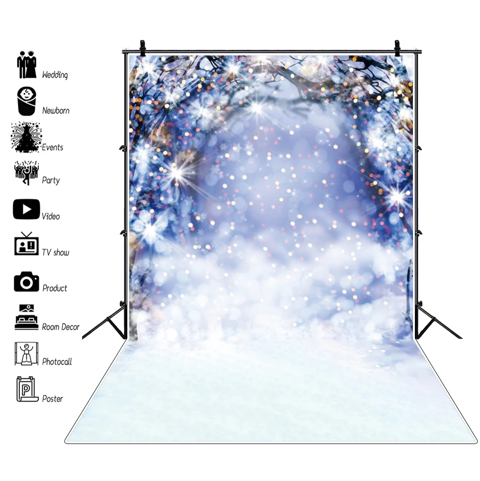 Зимний Снежный лес блестясветильник свет боке в горошек ребенок портрет фотография Фон Рождество винил фон для фотостудии
