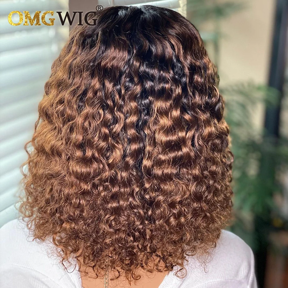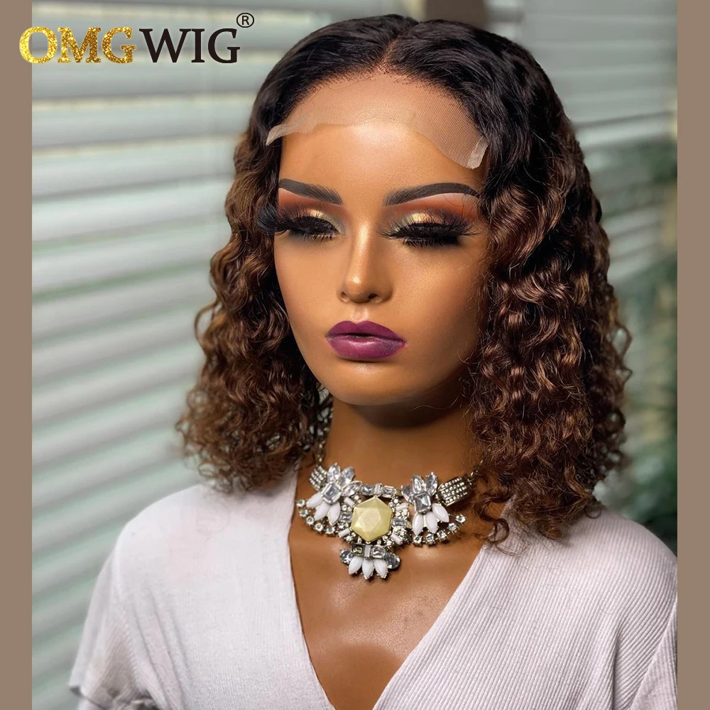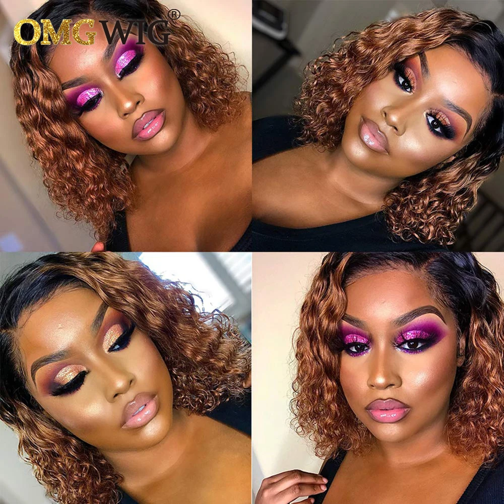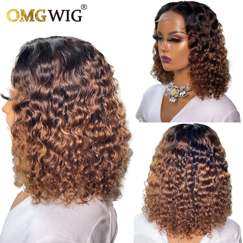 Медовый блонд Омбре 1B30 короткий Боб кудрявый парик для женщин водная волна малазийские человеческие волосы парики 4x4 кружева закрытие фронта парик Jerry Curl