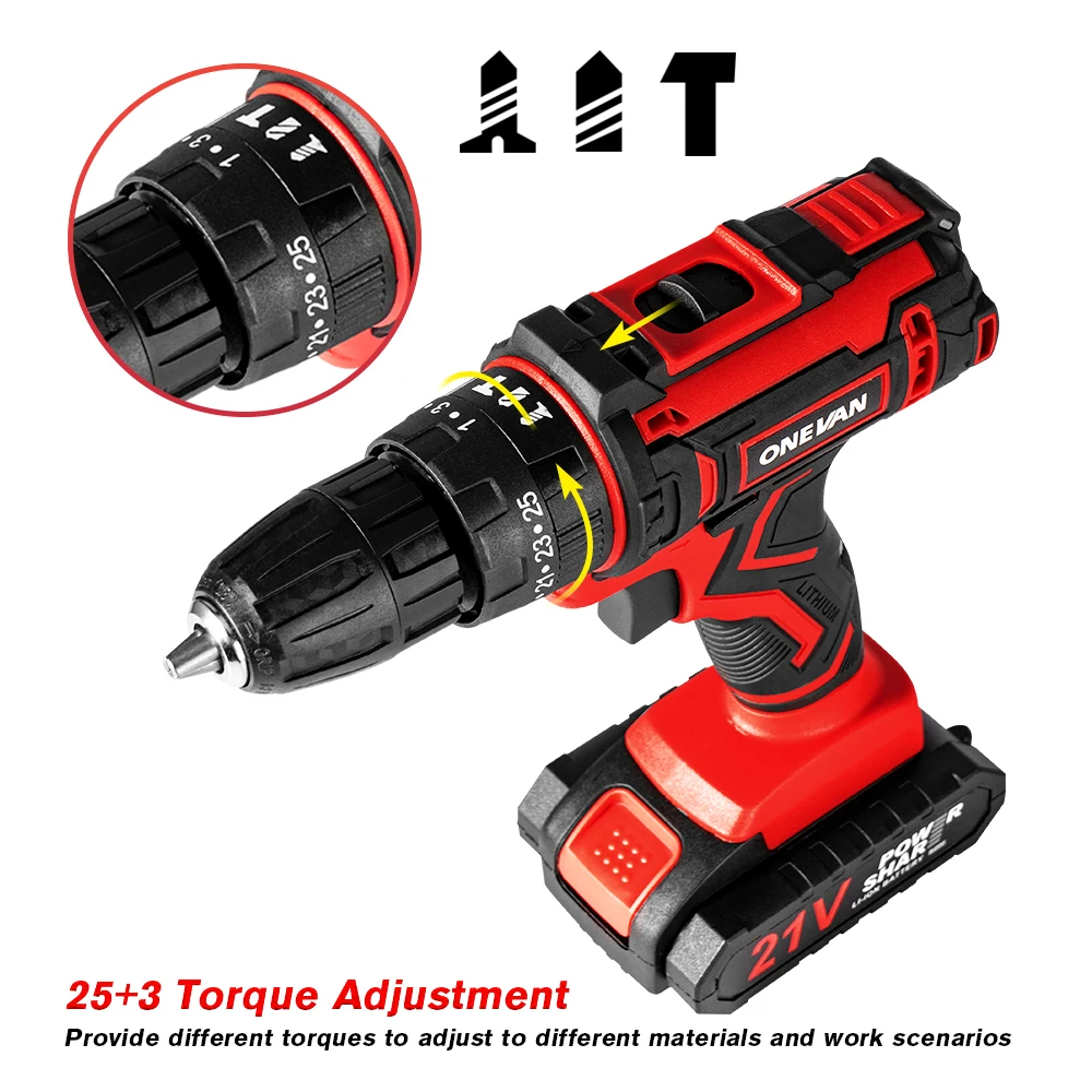 -25 + 3 муфты управления, обеспечивает 25 режимов крутящего момента и дрели для различных применений.