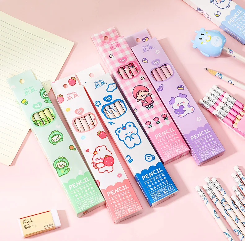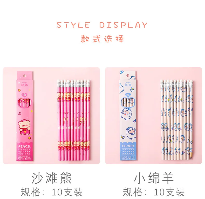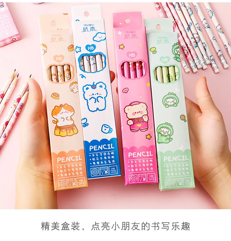 Мультяшный милый карандаш HB карандаши для эскизов, рисования с ластиком Kawaii канцелярские принадлежности Студент, школа, офис принадлежности для детей подарок 10 шт.