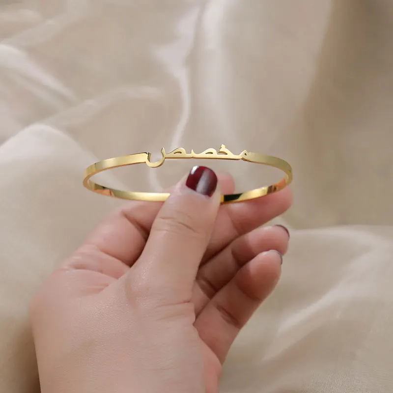 Индивидуальные арабские браслеты с именем, персонализированный регулируемый браслет из нержавеющей стали для женщин и мужчин, свадебные украшения, подарки