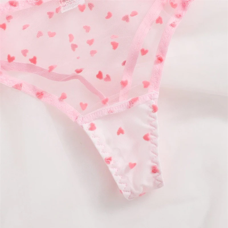 Кружевной сетчатый прозрачный сексуальный комплект нижнего белья, женские порно красные сердца с вышивкой, бесшовный бюстгальтер, трусы, комплект с оборками, нижнее белье, экзотический комплект