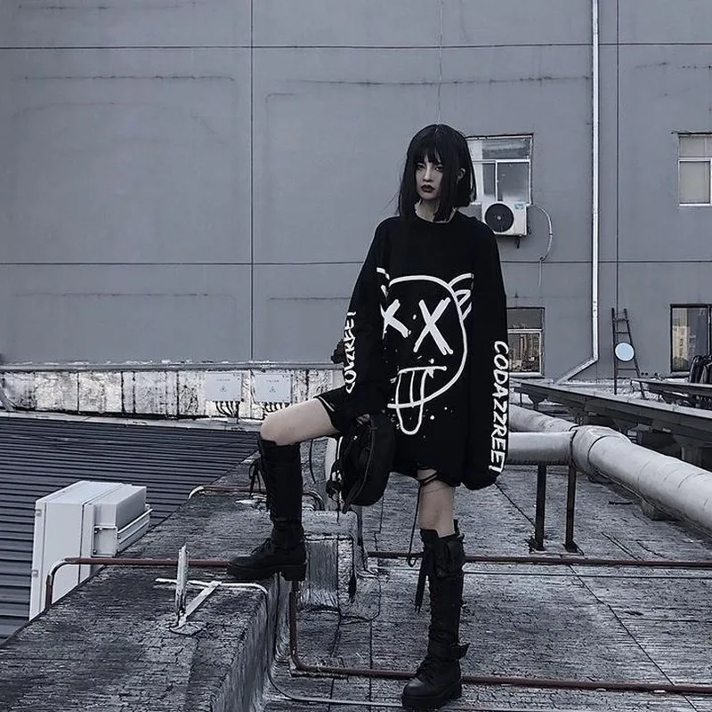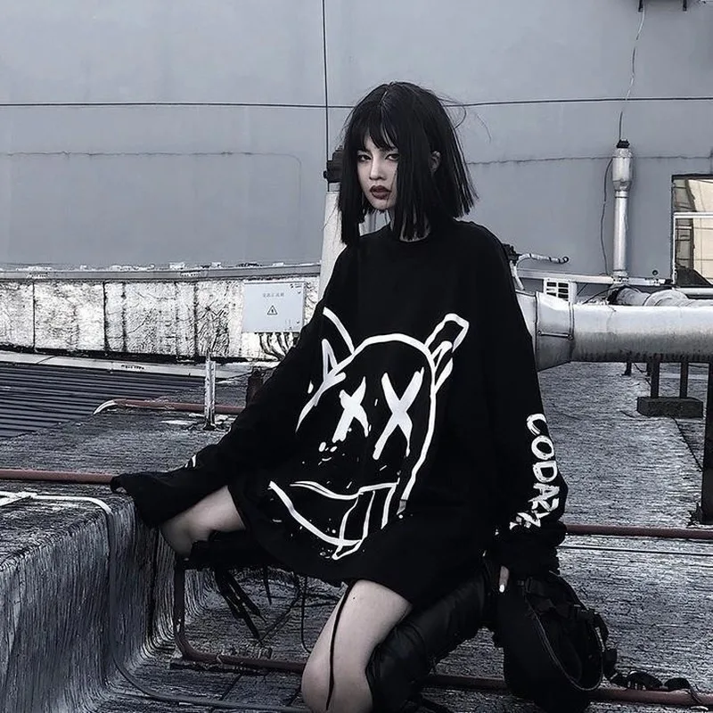 Модная футболка с длинным рукавом в Корейском стиле, футболка в стиле хип-хоп с граффити, уличная одежда в стиле Харадзюку и панк, женская футболка в готическом стиле