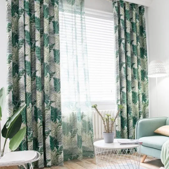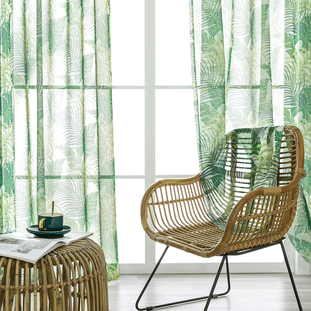 Занавески для гостиной, с тропическим принтом, с зелеными листьями и пальмами