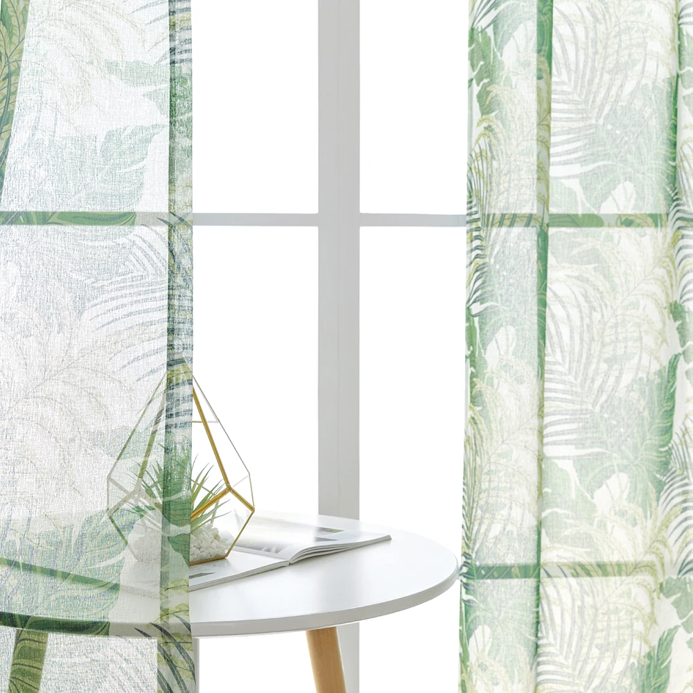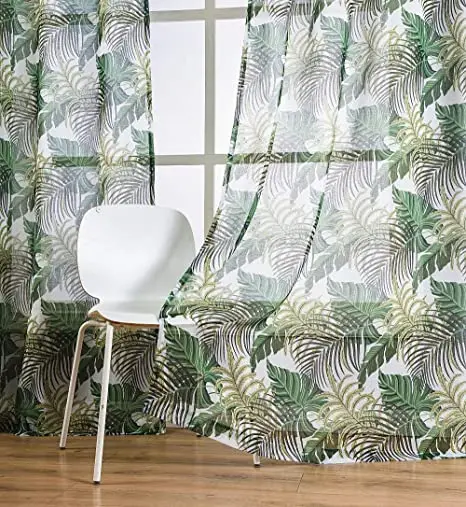 Полупрозрачные шторы MRTREEES, тюлевые шторы с зелеными листьями дл...