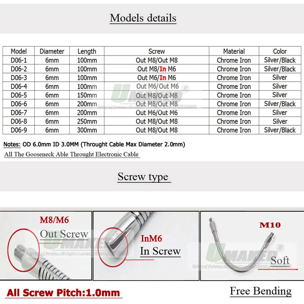 Светодиодная настольная лампа гусиная шея диаметром 6 мм, 1 шт., Универсальный гибкий держатель 10-30 см, мягкая металлическая змеиная трубка для настольных светильников сделай сам