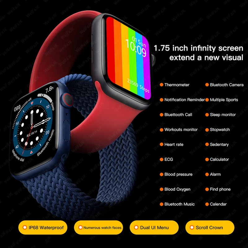 Оригинальные умные часы Apple 2021 серии 6 IWO W26 для мужчин и женщин, умные часы, спортивный фитнес-браслет для Huawei Xiaomi Apple Watch PK X8 Hw22 Hw16