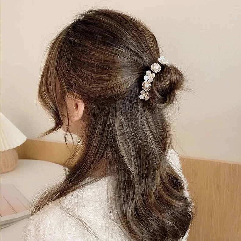 Жемчужная Цветочная веревка для волос сделай сам, прическа для женщин, кольцо для волос, элегантный ретро головной убор Maruko ручной работы, Эластичные аксессуары для волос