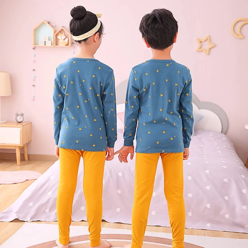 Пижама для мальчиков и девочек, из 2 предметов, осенняя, хлопковая