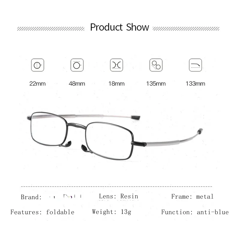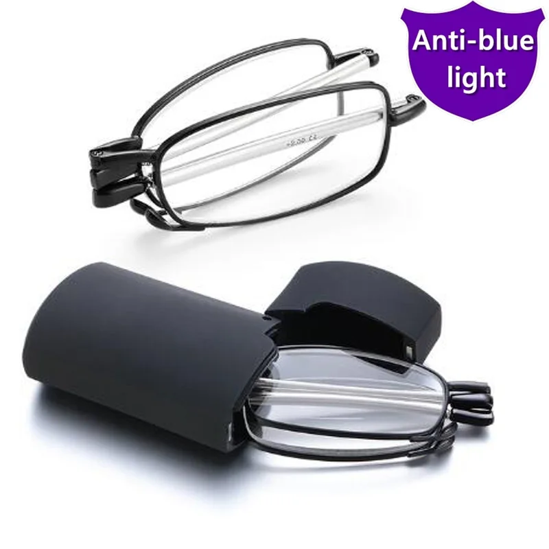 Складные мужские очки для чтения с выдвижной металлической оправой и защитой от сисветильник света