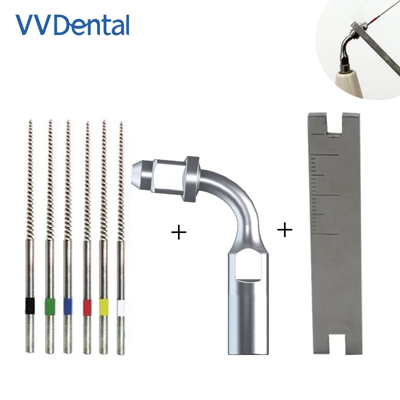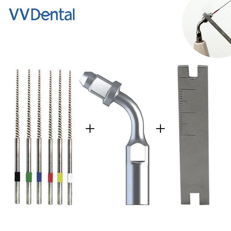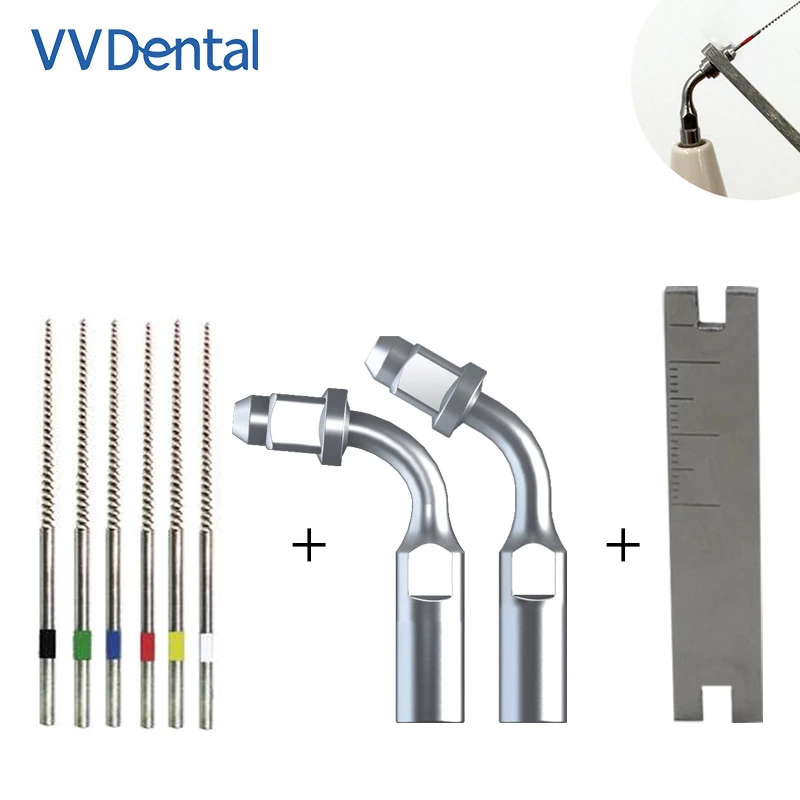 VVDental ультразвуковой эндодонтический наконечник с зубным ключом и 6 шт. смешанных файлов размеров, совместимых с saelec/Woodpecker-DTE для очистки Endo