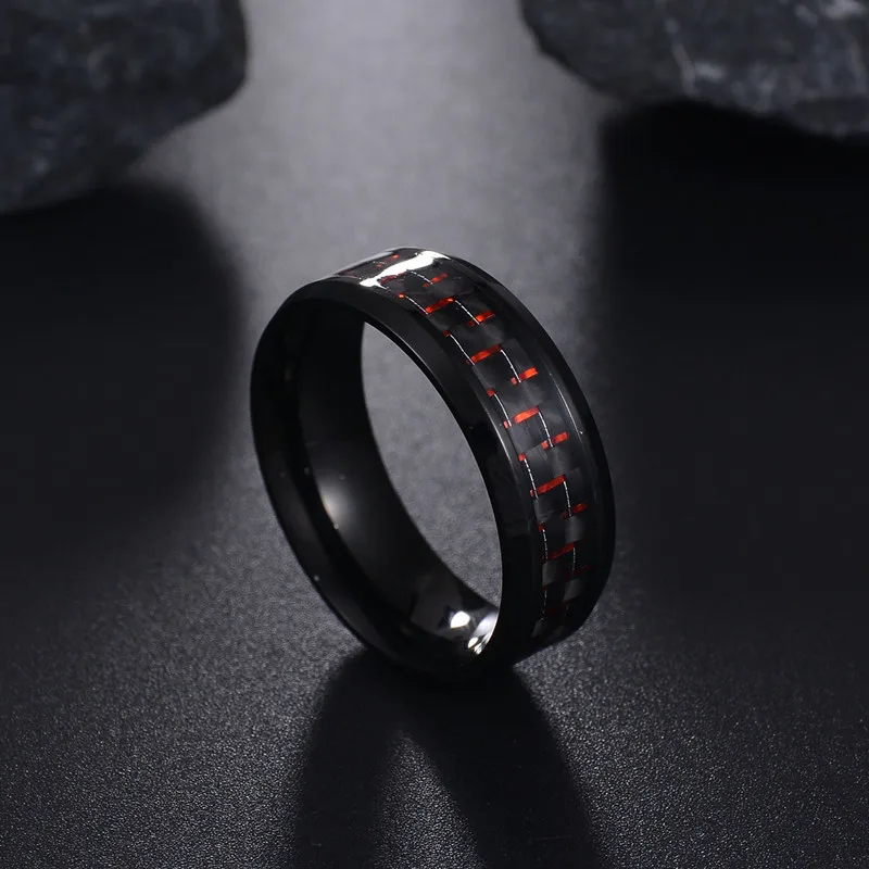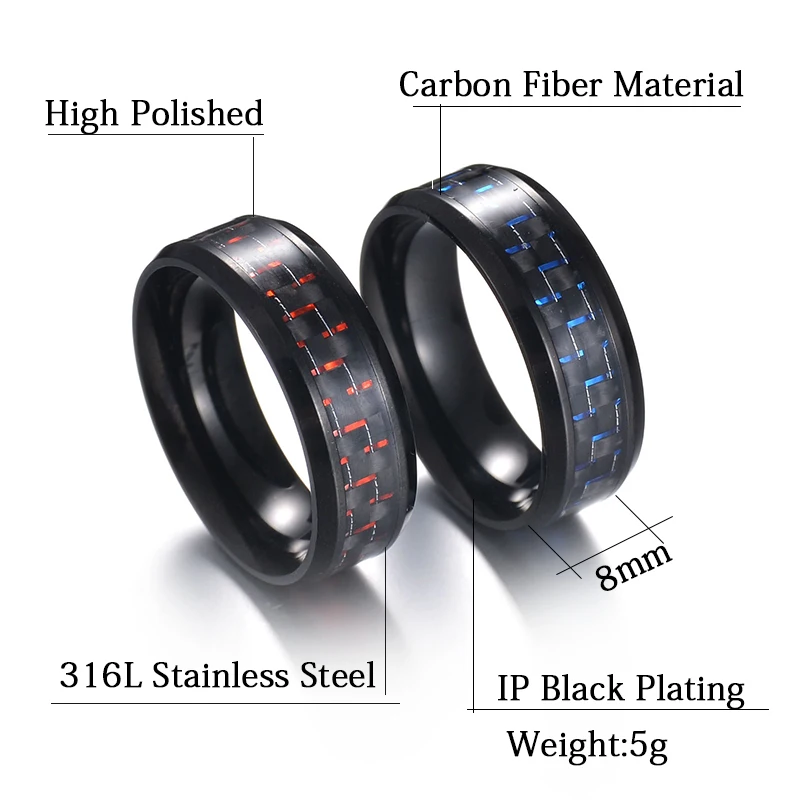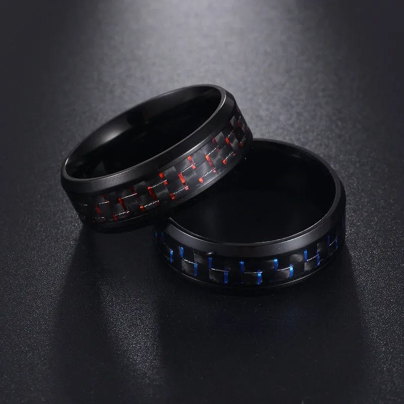 Кольцо унисекс из углеродного волокна, шириной 8 мм, в стиле панк, с решеткой красного и синего цветов, решетчатое кольцо