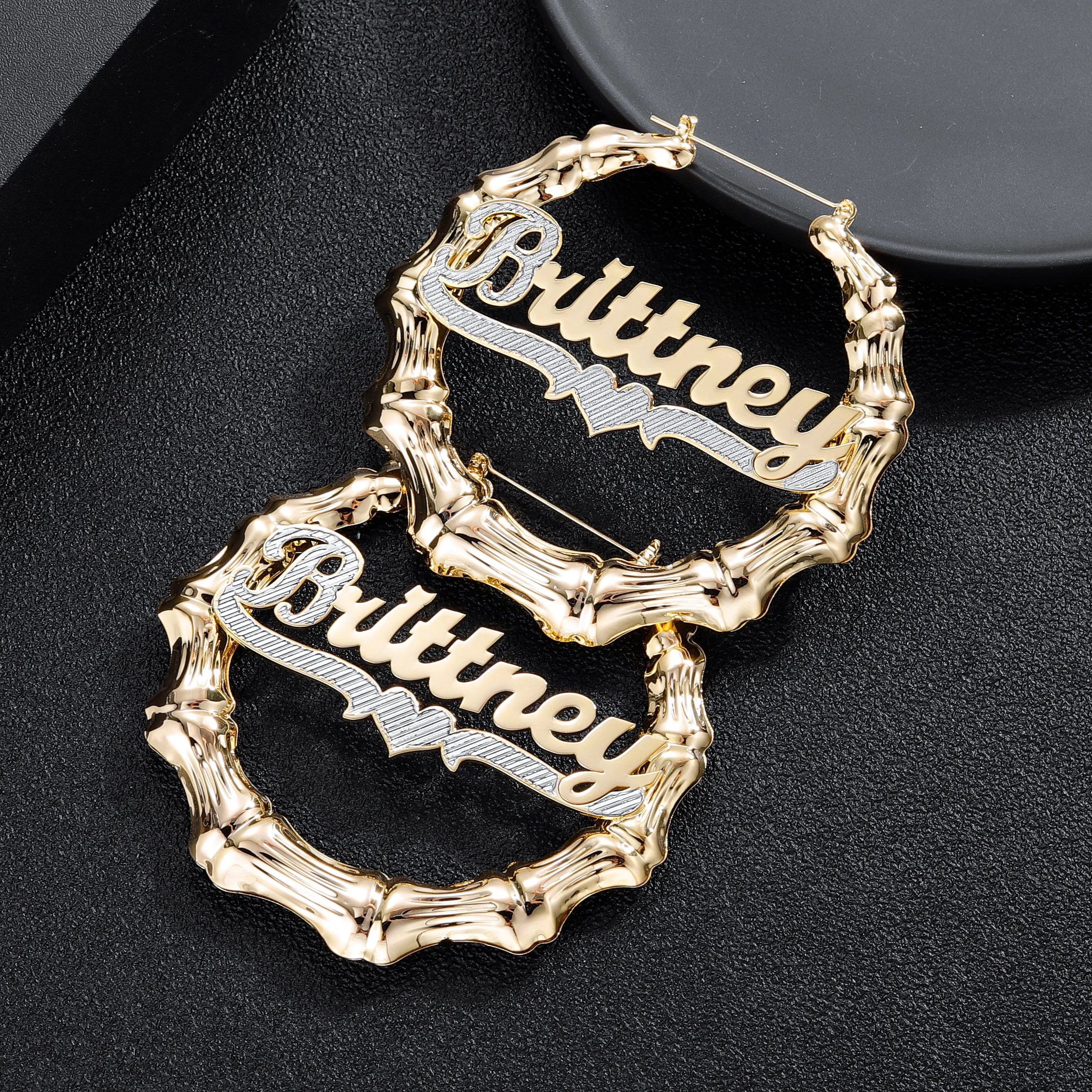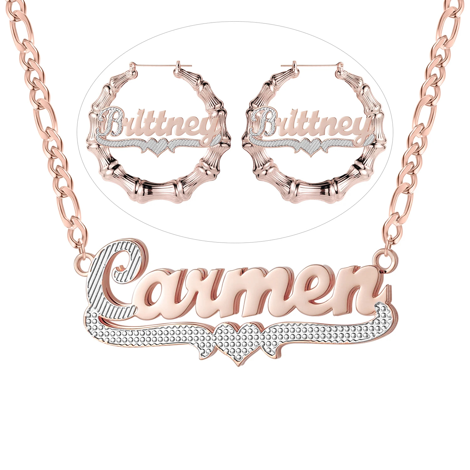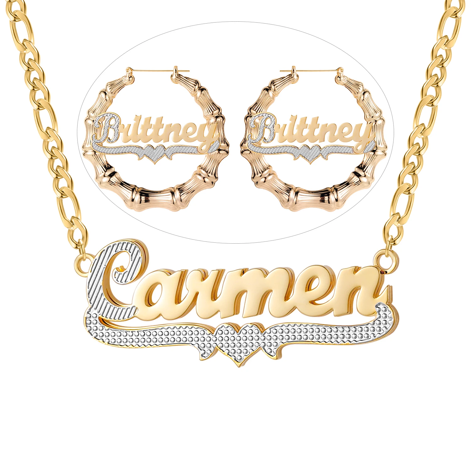 Двухцветный комплект ювелирных изделий, персонализированное Двухслойное ожерелье-цепочка с покрытием из 18-каратного золота и бамбуковое наименование