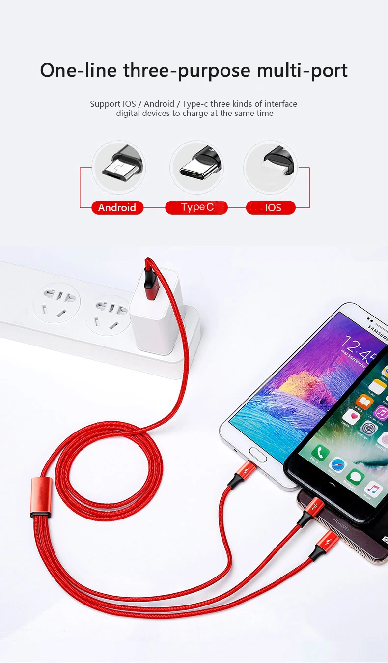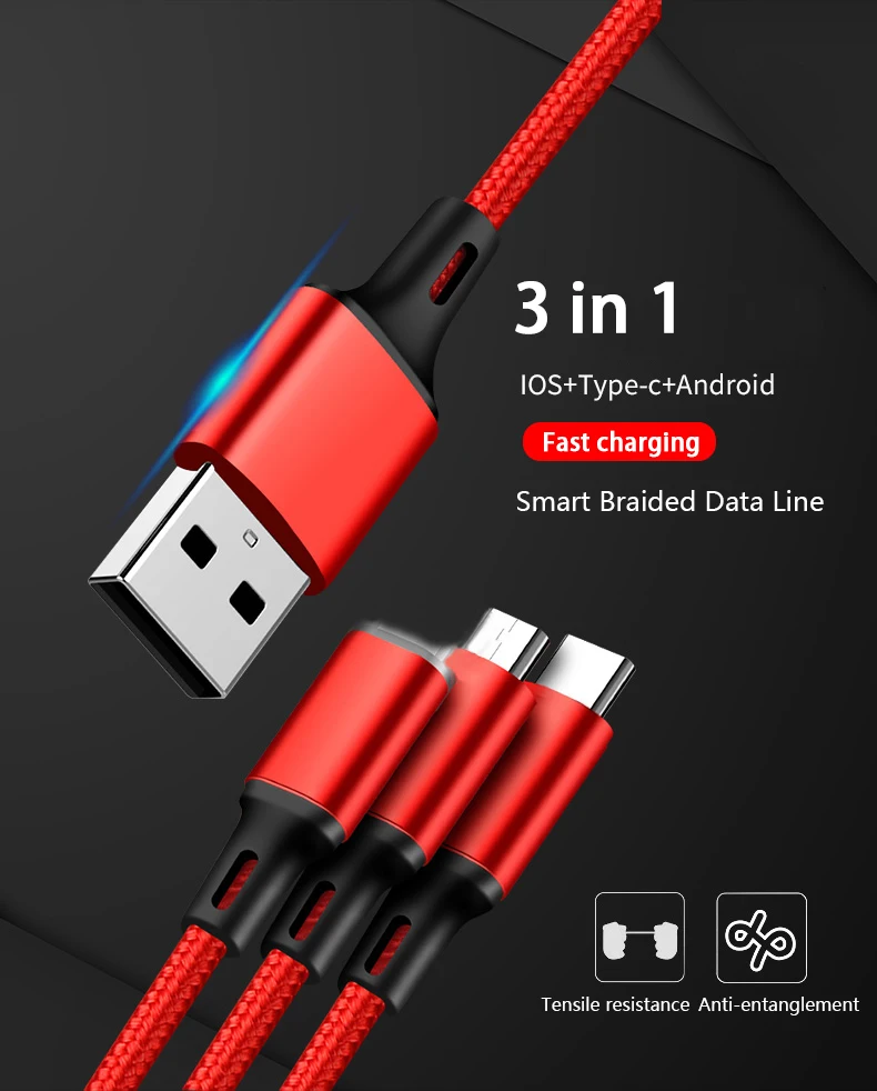 Кабель USB 3 в 1 для iPhone 13, 12, 11 Pro Max, Type-C, Micro Lighting