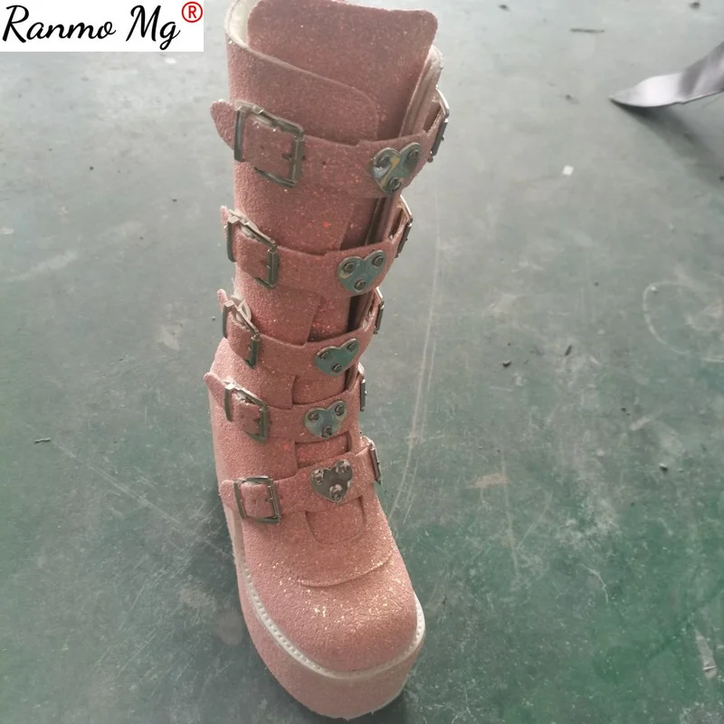 Женские мотоциклетные ботинки в готическом стиле, черные ботинки до щиколотки на платформе и высоком каблуке, большой размер 43