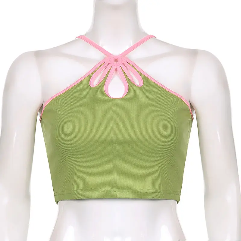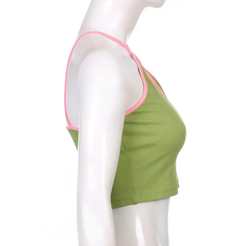 Женский укороченный топ с лямкой на шее, без рукавов, с открытой спиной