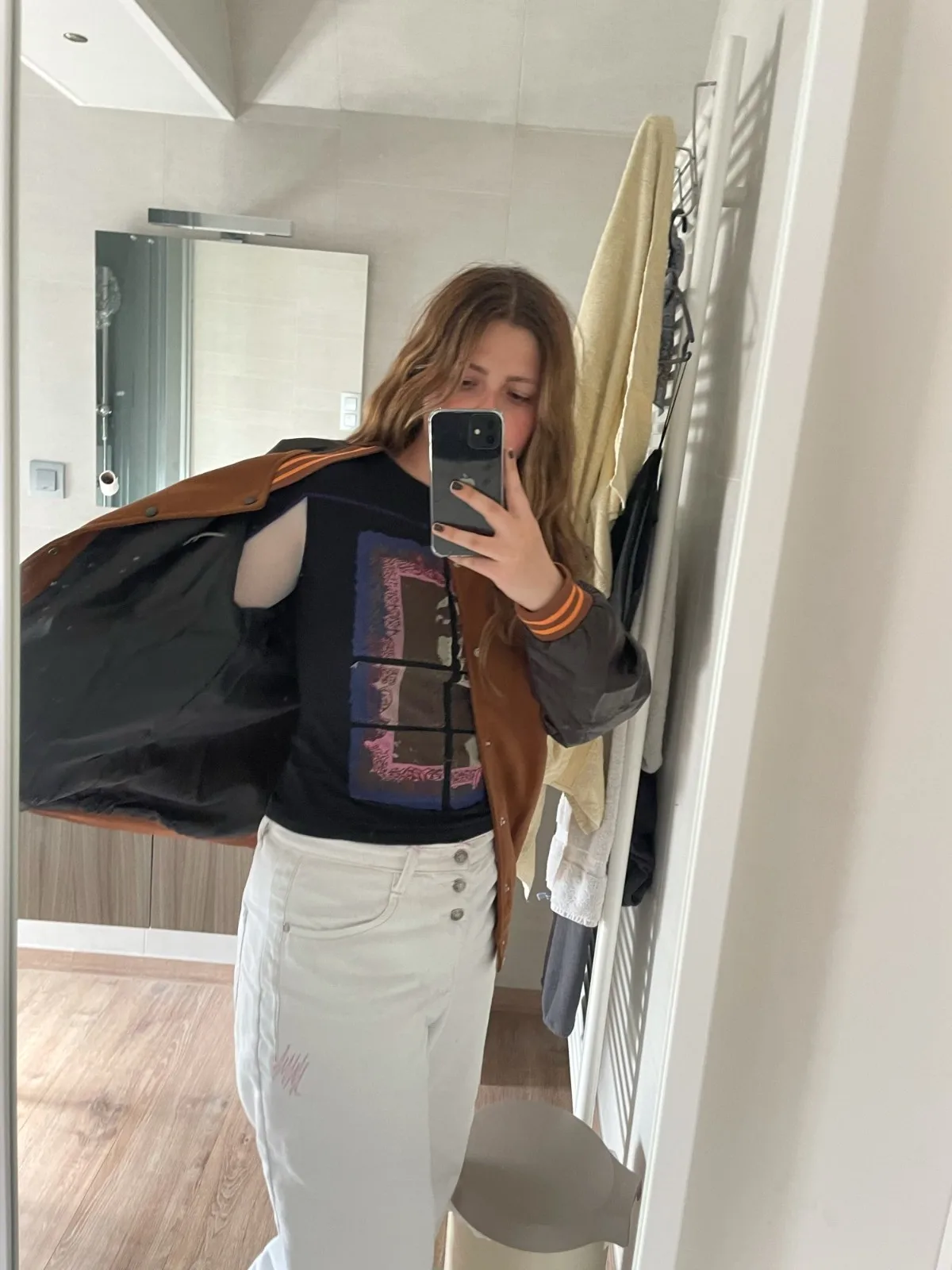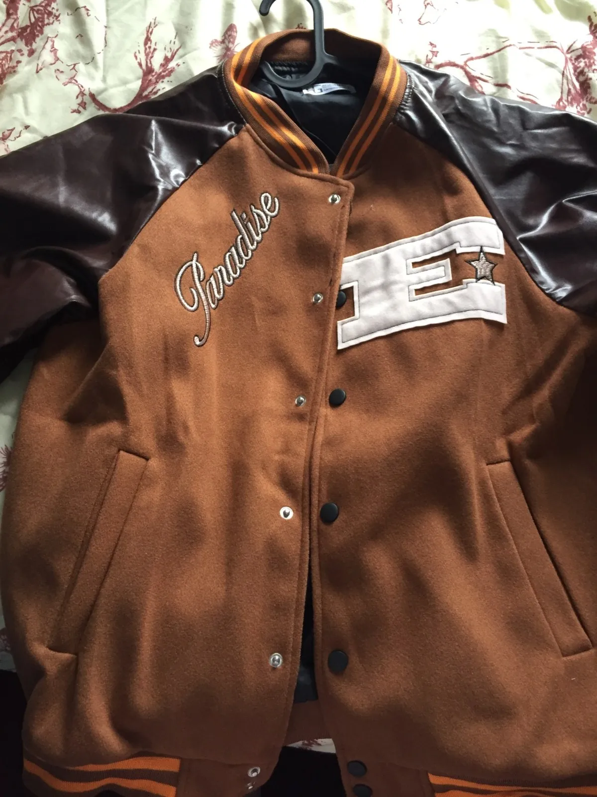 Куртка-бомбер бейсбольная МужскаяЖенская, коричневая, на молнии