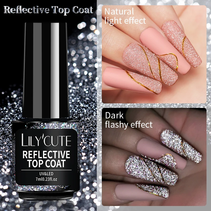 Светоотражающее верхнее покрытие LILYCUTE 7 мл, полуперманентный Бл...
