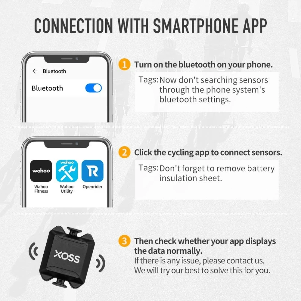 Датчик Каденции XOSS отслеживает вашу скорость и скорость с помощью индукции земли, нет необходимости в магнитах.
