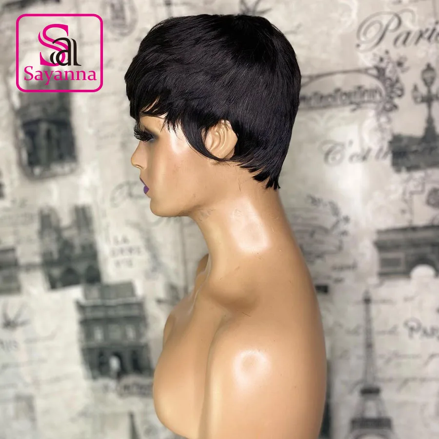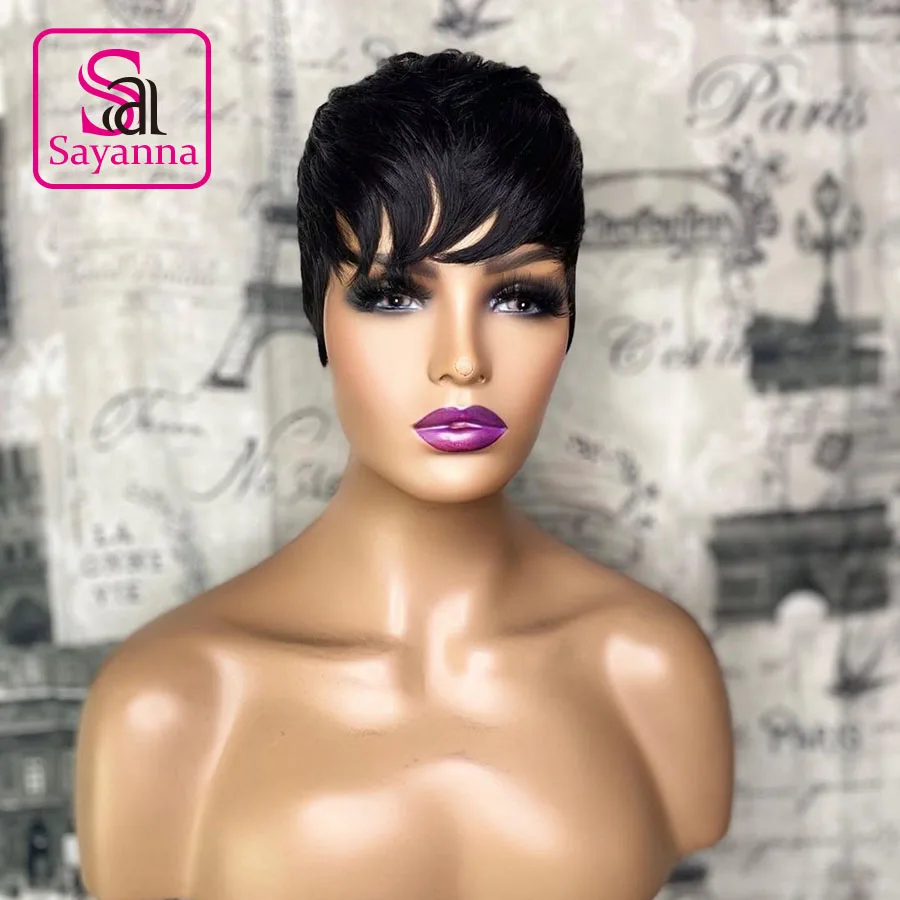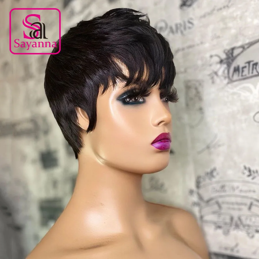 Парик для женщин с полной машинкой, прямые человеческие волосы, парик, короткий парик с вырезом фея, бразильский парик без повреждений, парик на всю машинку с челкой