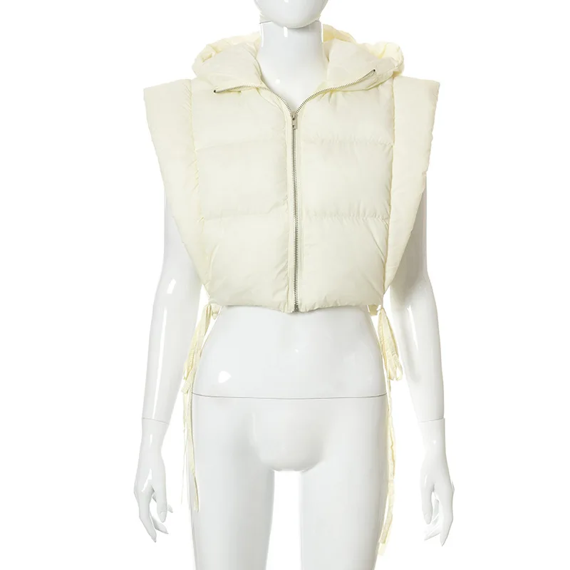 Укороченный пуховой жилет на молнии с капюшоном, куртки 2021, зимни...
