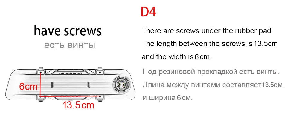 В тех случаях, когда есть винты под резиновая прокладка, длина между винтами-13 см, а ширина составляет 2,5 см.