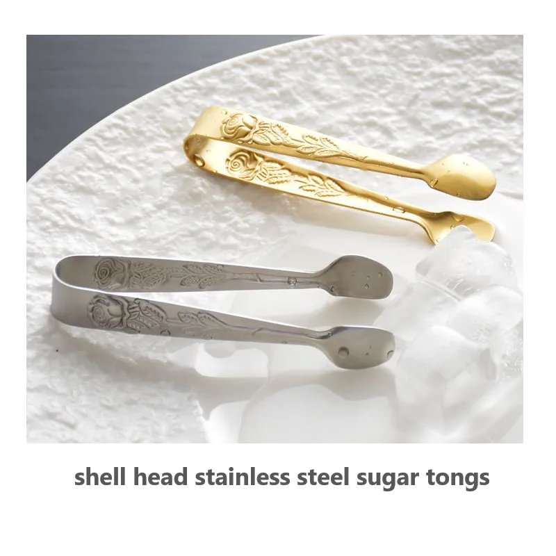 Пищевые Щипцы Kichen, зажим из нержавеющей стали для еды, зажим для кубиков льда с узором розы, зажим для печенья, щипцы для лимона, зажим для барбекю