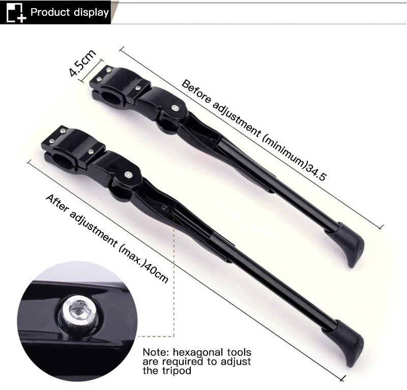 Размеры перед Регулировка: 34,5*4,5 см после корректировки: 40*4,5 см. Установка продукта: во-первых, снимите три внутренних винта регулировки шестиугольника с головки штатива; Во-вторых, извлеките алюминиевый сплав из внутренней части штатива; И, наконец, установите.