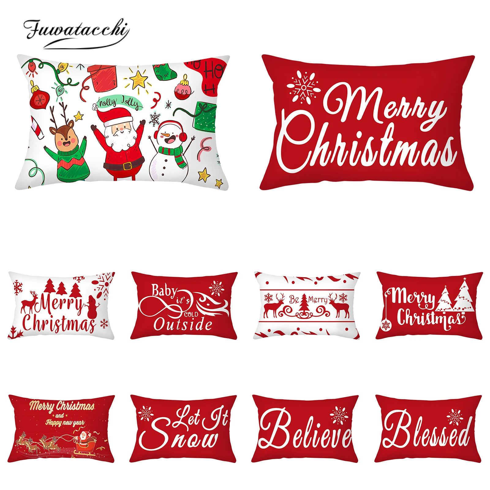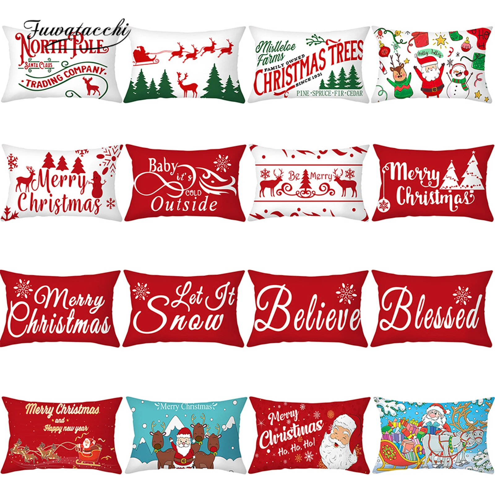 Наволочка 30x50, с изображением рождественской елки, Деда Мороза