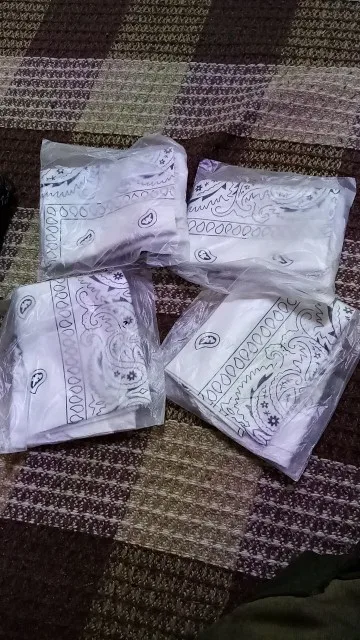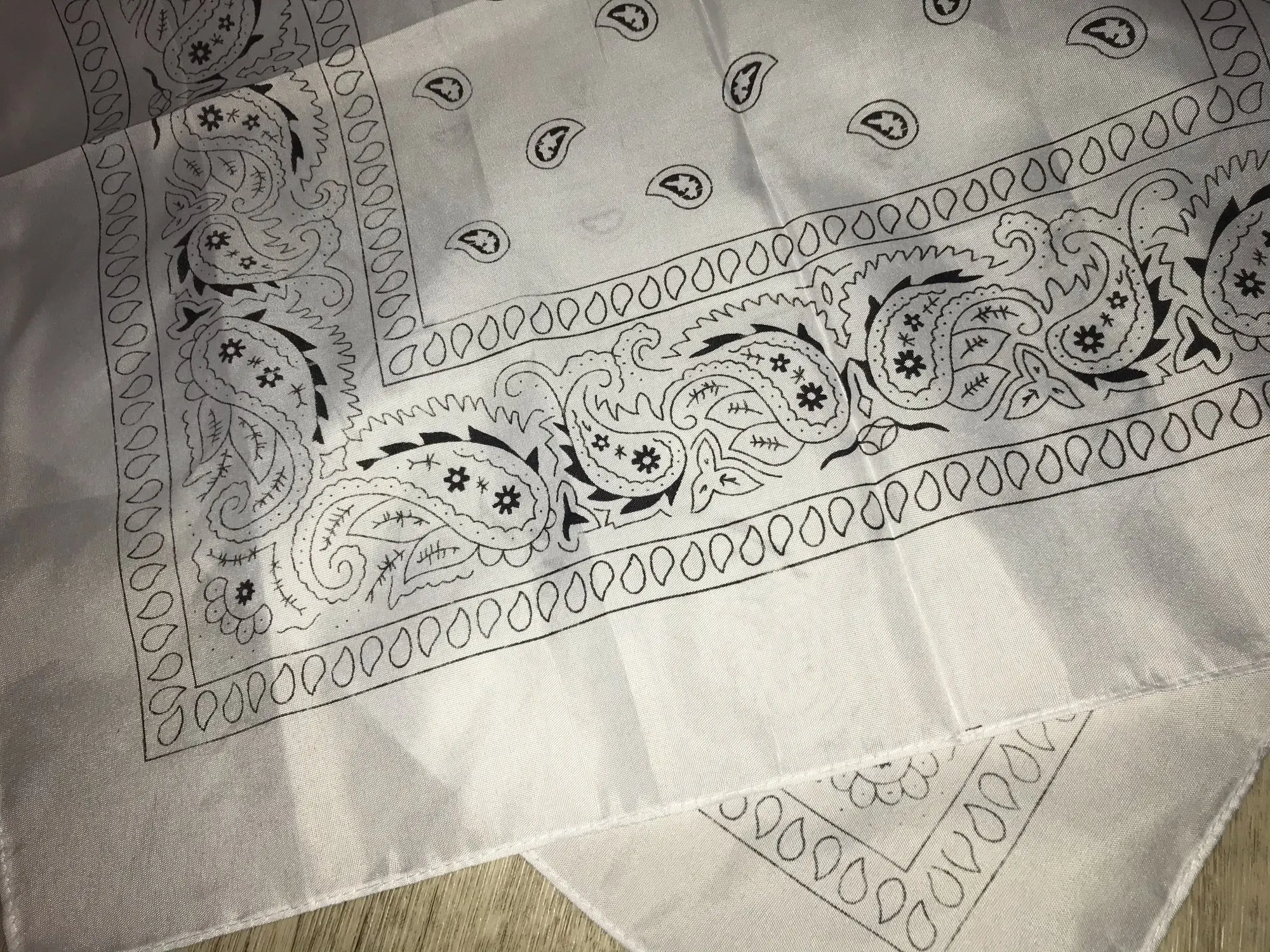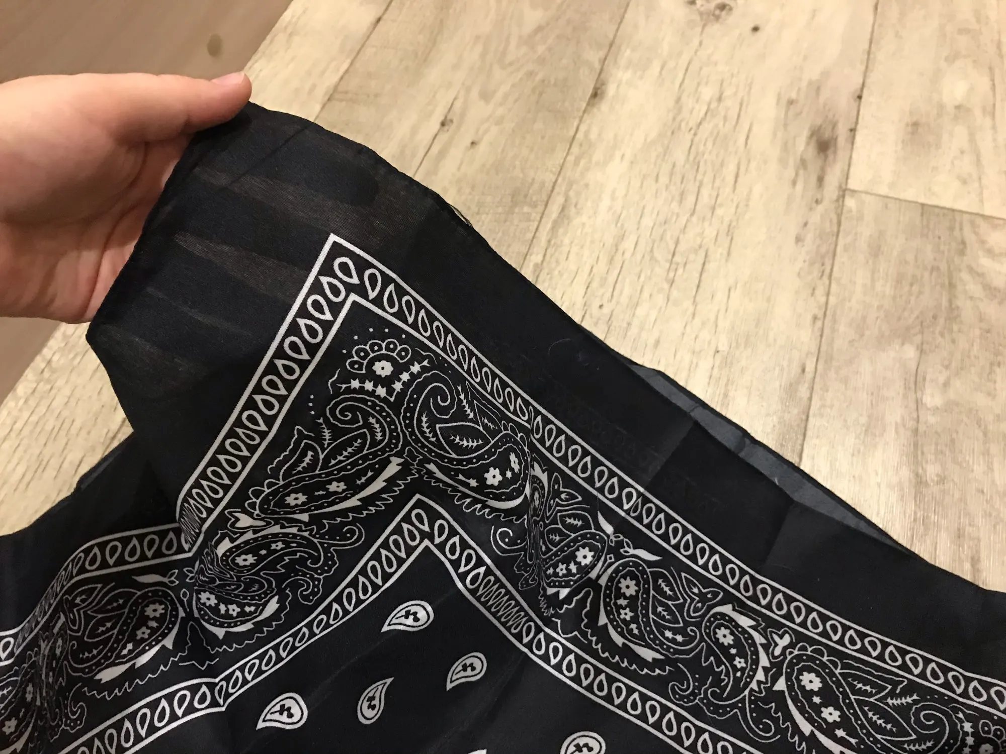 Неплохие платки. Раньше такие в fixprice покупал, теперь там не стало, нашёл на aliexpress. Можно как бандану носит или на шее как повязку, вариантов много. Синтетики только на ощупь много. Но я брал как элементы белых костюмов, а не для постоянного ношения. Сторона 45см примерно.