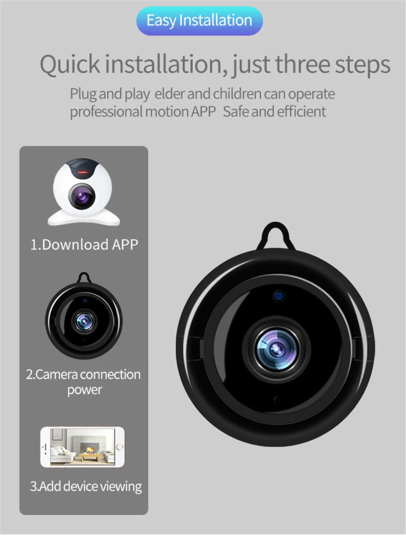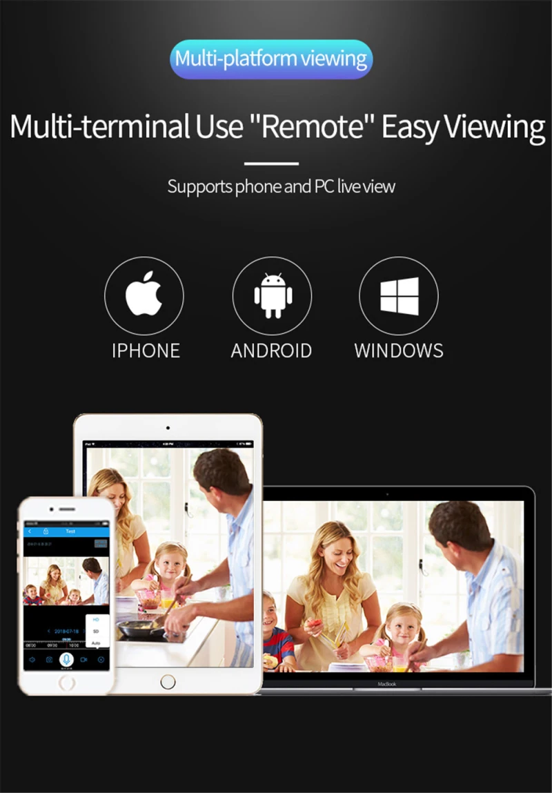 720P полный приносит вам другой опыт. Эта беспроводная ip-камера позволяет вам просматривать в режиме реального времени то, что происходит в вашем доме или офисе, даже когда вы находитесь в отпуске или быстрой деловой поездке. Удаленный просмотр можно получить через приложение (HD WIFICAM PRO) с помощью смартфонов iOS и Android.