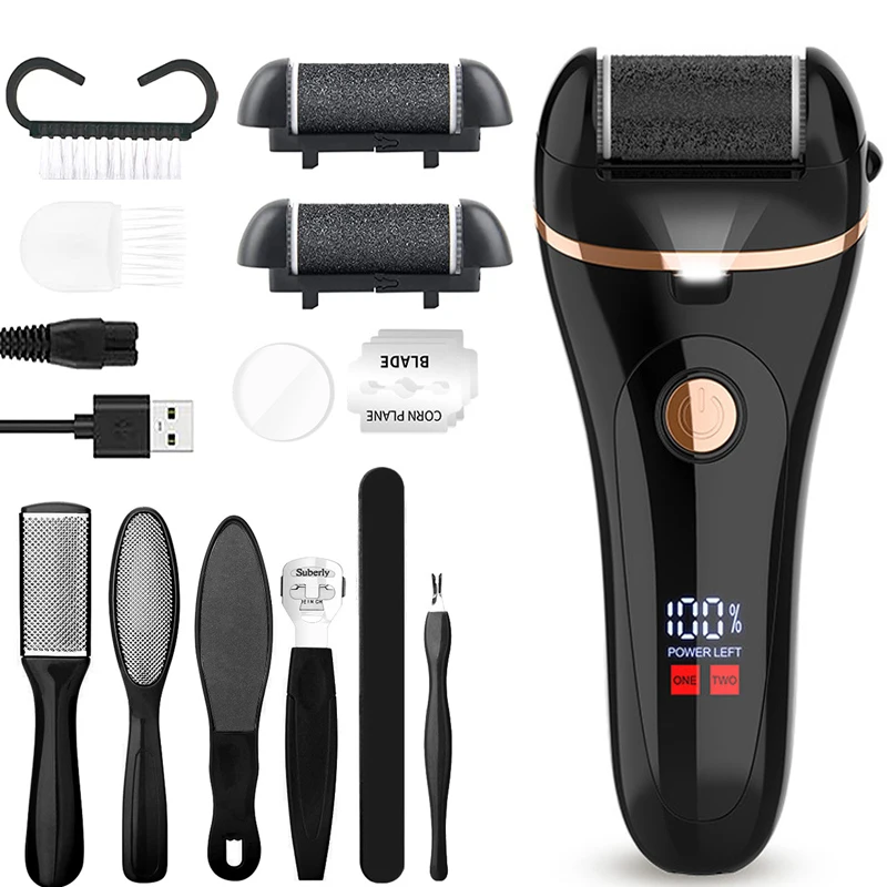 Набор для электрического педикюра, устройство для удаления мозолей, пилка для ног, педикюрные инструменты с 3 роликовыми головками, уход за ногами для твердой сухой кожи (черный)