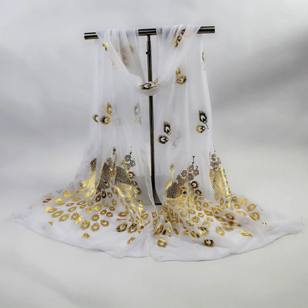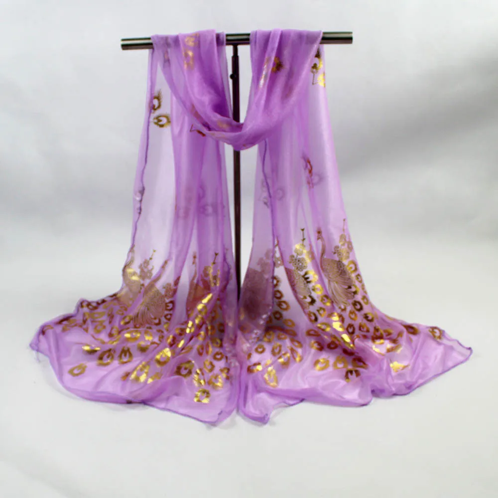 Женский разноцветный шарф с павлиньим цветком, длинная мягкая накидка, шальПашмина