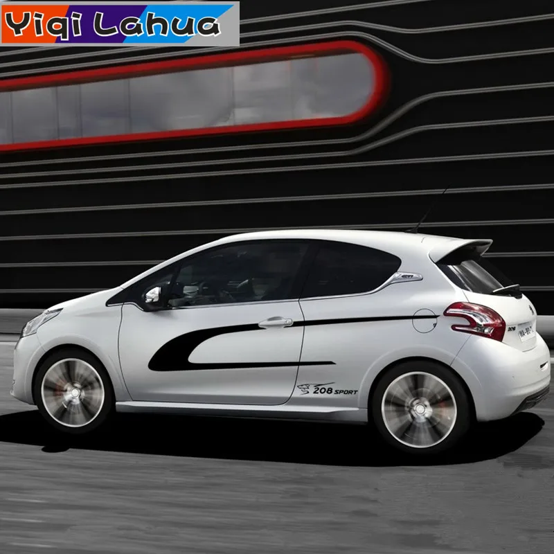 Спортивные полосы, автомобильные дверные полосы, наклейка на талию для PEUGEOT 208 GTI, 3 двери, обе стороны, декоративные наклейки для кузова автомобиля