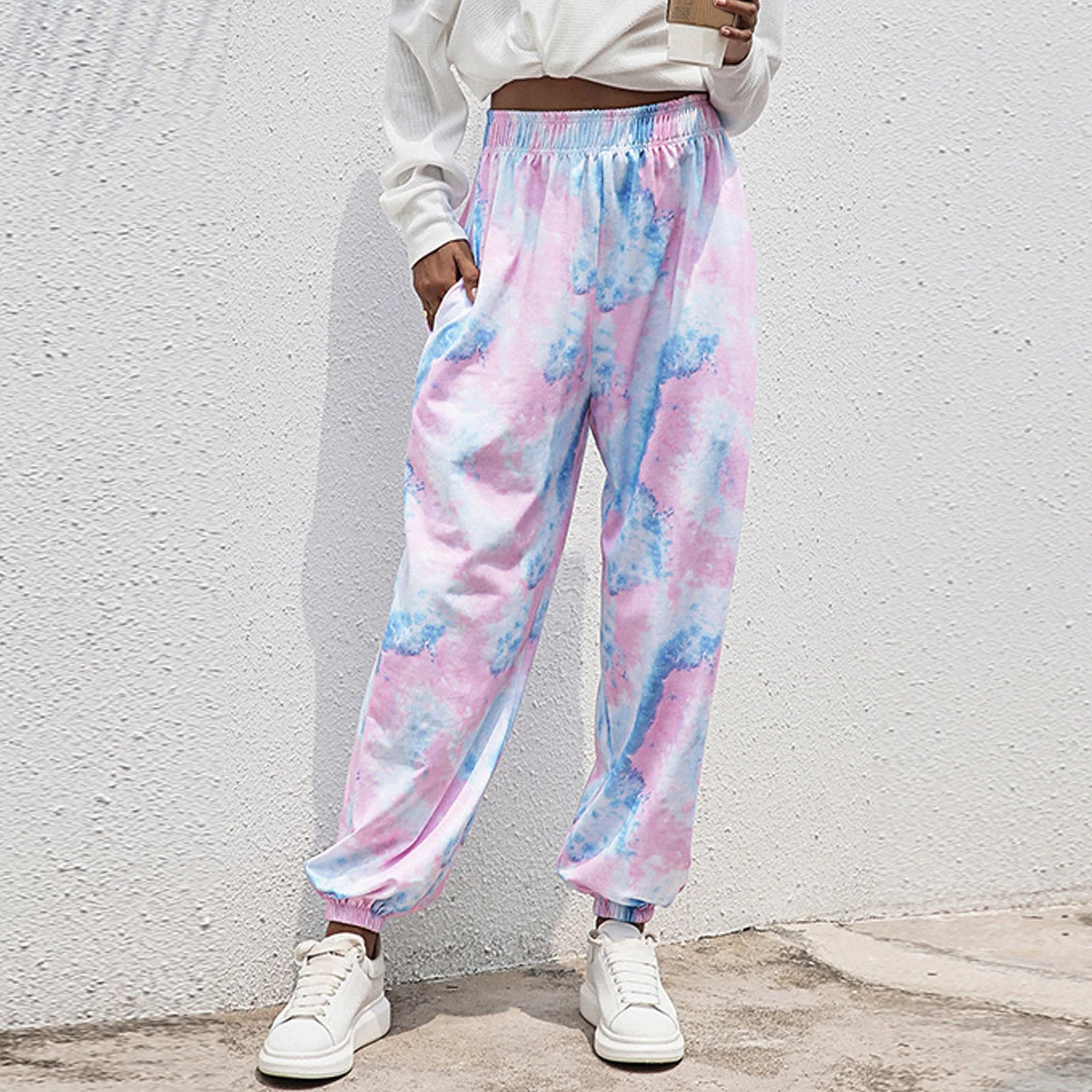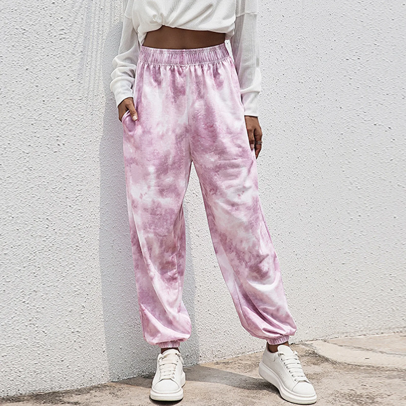 Посылка включает в себя: штаны-1 шт.Материал: полиэстерРазмер: S-2XL, толстый/тонкийЦвет: белый, серый, черный, зеленый, розовыйСвободные женские брюки; Повседневные свободные брюки с широкими штанинами и эластичной резинкой на талии