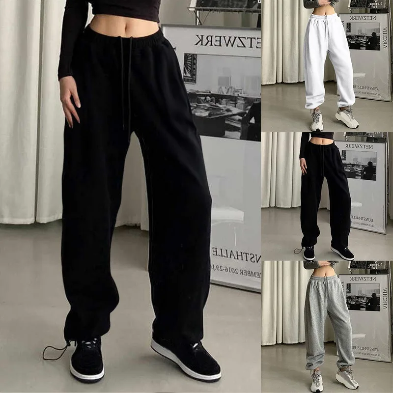 Свободные джоггеры, спортивные брюки с широкими штанинами, женские брюки, мягкие брюки с высокой талией, уличная одежда, корейские повседневные штаны для йоги, Прямая поставка