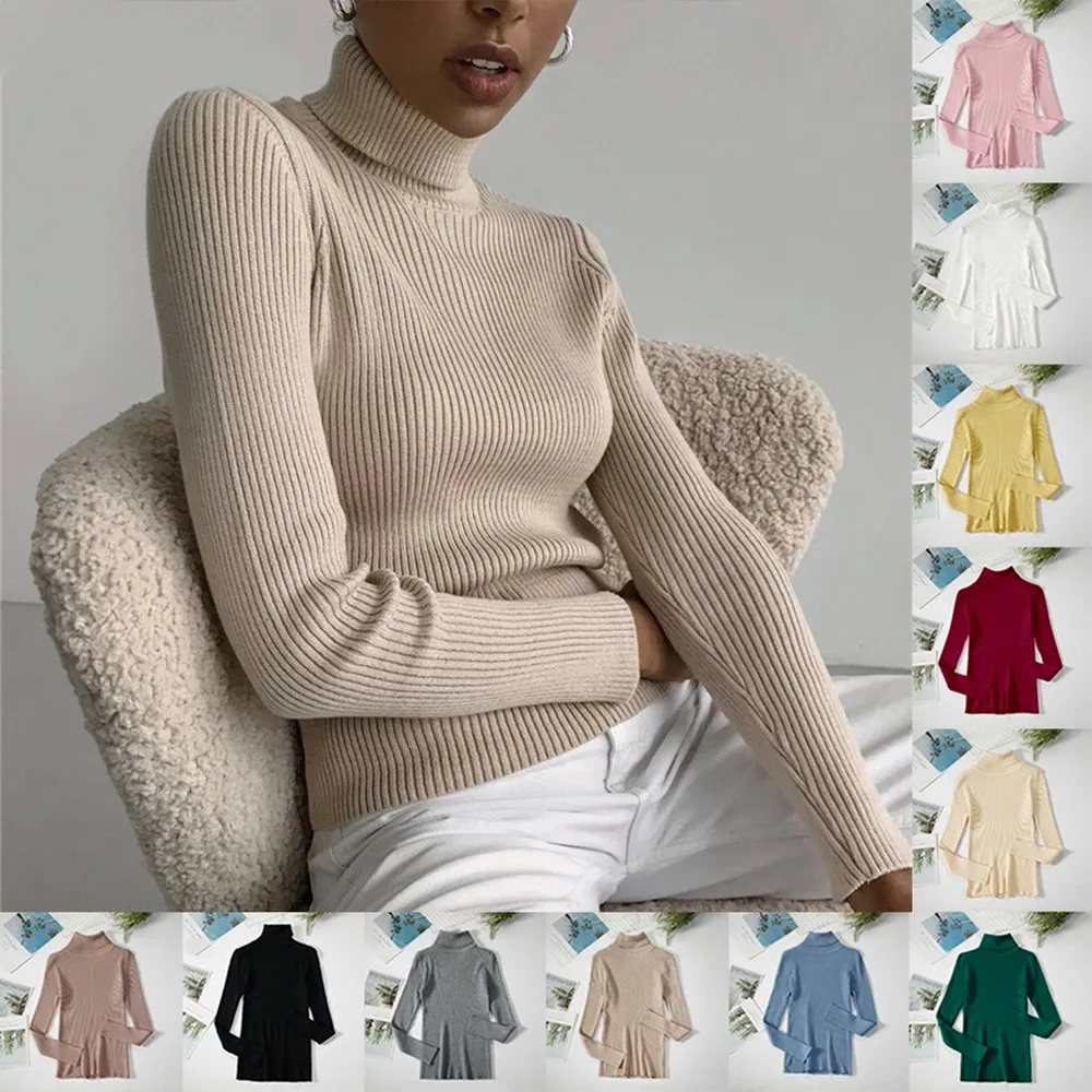 Базовая водолазка 2021, женские свитера, осенне-зимние топы, тонкий женский пуловер, вязаный свитер, джемпер, мягкий теплый свитер