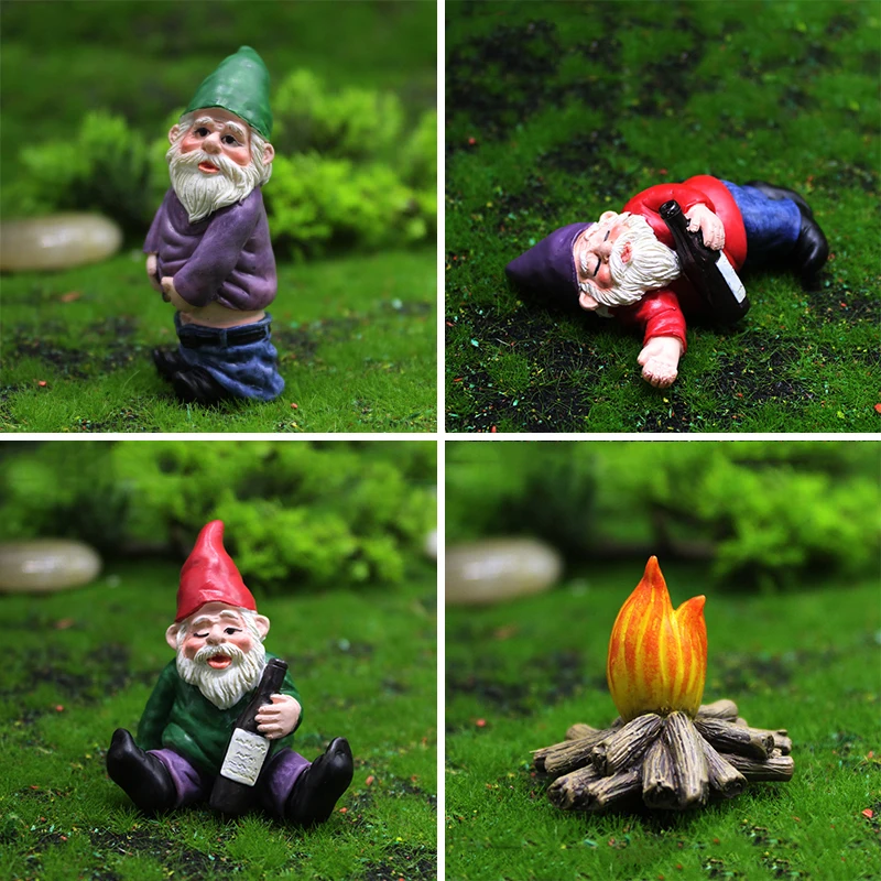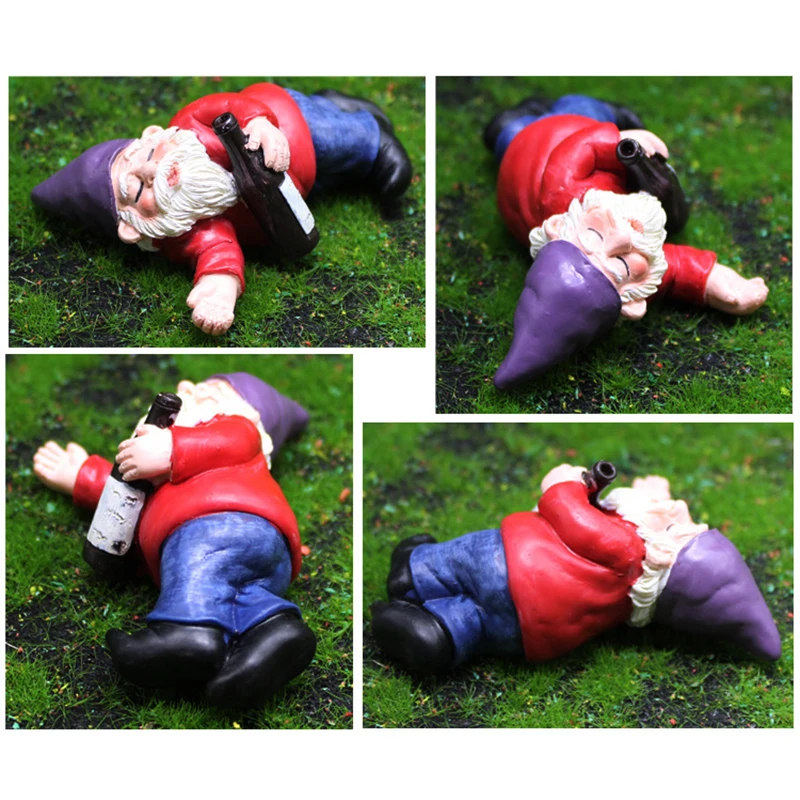 Мини пьяные гномы сказочная садовая статуя миниатюры двор эльф фигу...